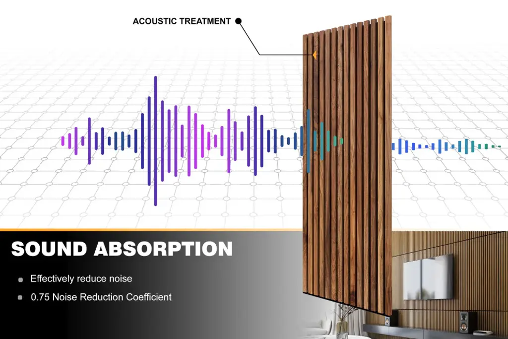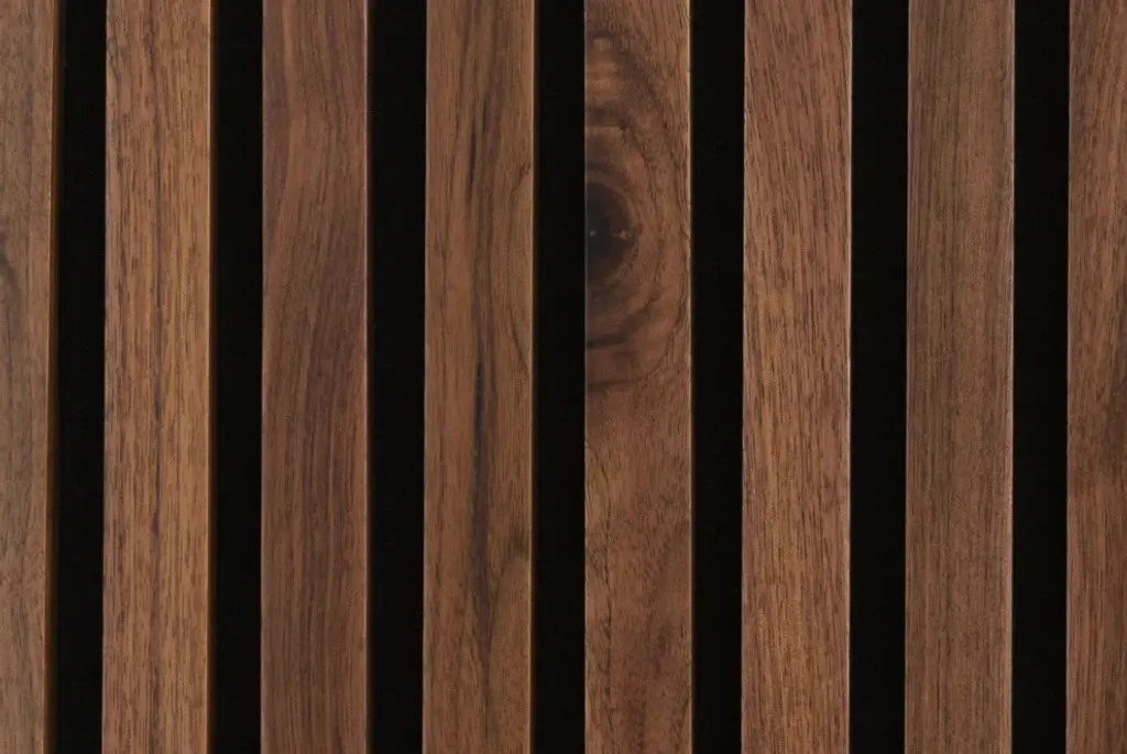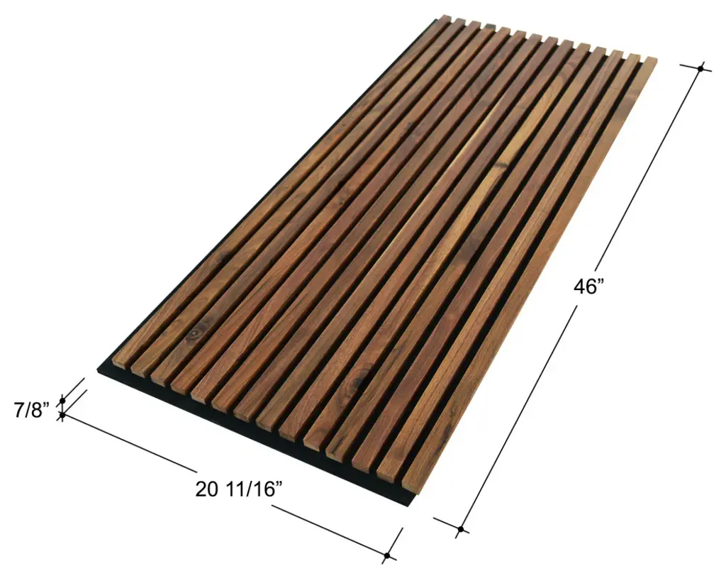 WALNUT SOLID WOOD SLAT WALL PANELSDiscover the timeless beauty of Walnut wood with our Walnut Solid Wood Slat Wall Panels. Walnut is renowned as one of the most beloved woods for interior décor and furnishings, and our wood wall panels showcase its rich mocha hue. This hardwood is not only visually stunning but also highly durable, featuring a distinctive straight grain with attractive knots and waves. With its classic look, Walnut wood is suitable for a wide variety of home styles, adding a touch of sophistication to any space.✅SPECIFICATIONS: Our solid wood slatted wall panels are meticulously hand-treated to maximize their natural beauty and ensure long-lasting wear resistance. Each box contains a pair of wall wood panels, with each wood slat wall panel measuring 46 x 20 11/16 x 7/8 inches. These slat wall panels seamlessly join together, allowing you to effortlessly create a professional-looking DIY wood slat wall that enhances the aesthetics and sound quality of your space.✅EASY INSTALLATION FOR DIYERS & PROFESSIONALS: At Woody Walls, we believe in making DIY home projects hassle-free and affordable. Installing our Walnut wood slat wall panels is a breeze with just a circular saw, screws, and/or construction adhesive. These versatile acoustic wood panels can be mounted on walls, ceilings, alcoves, windows, and even gently curved surfaces. ✅IMPROVE SOUND QUALITY: Experience high-quality acoustic performance with Woody Walls Walnut Solid Wood slatted wall panels. Designed to reduce echoes and reverberation, each wood slat wall panel absorbs and scatters stray noise, significantly enhancing the overall sound quality of your space. Enjoy a more refined and immersive auditory experience with our Walnut wood wall panels.✅BRING YOUR DREAM DÉCOR STYLE TO LIFE: CREATE a distinctive and appealing look with the authentic elegance of our Walnut acoustic wood panels. Their versatility makes them suitable for a variety of styles, allowing you to bring your dream décor to life. Upgrade your walls effortlessly and fall in love with your living space all over again.Explore our collection of wood slat wall paneling and bring a touch of sophistication to your home with Woody Walls.