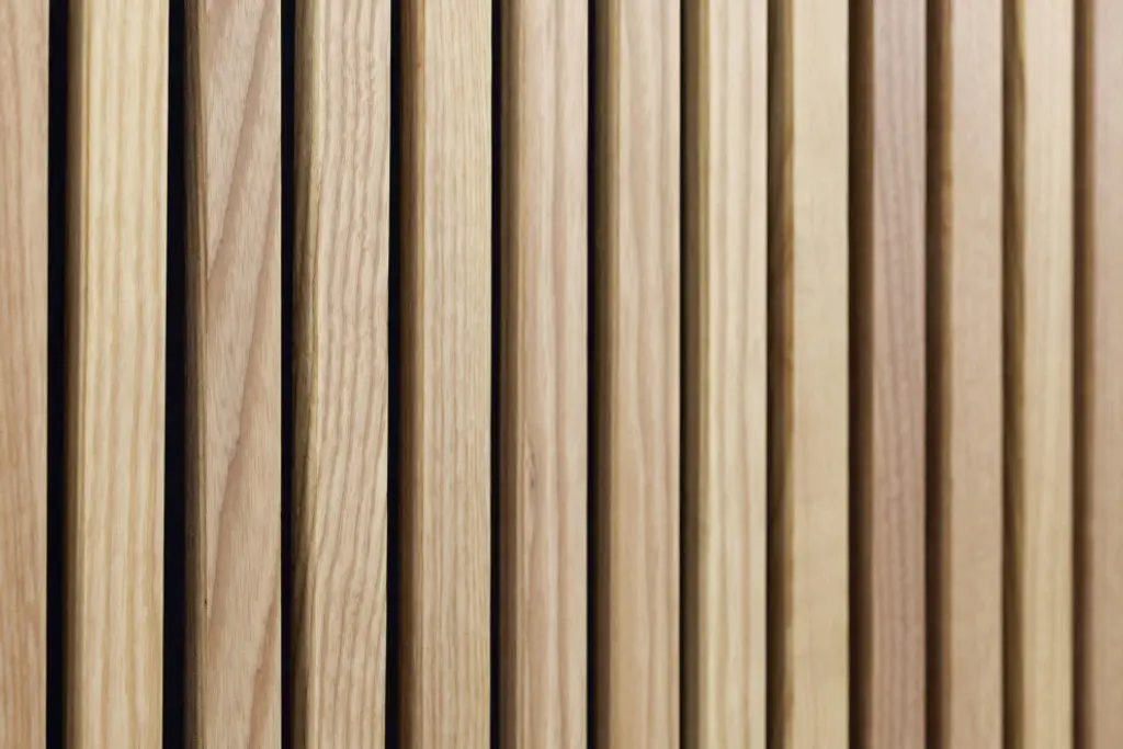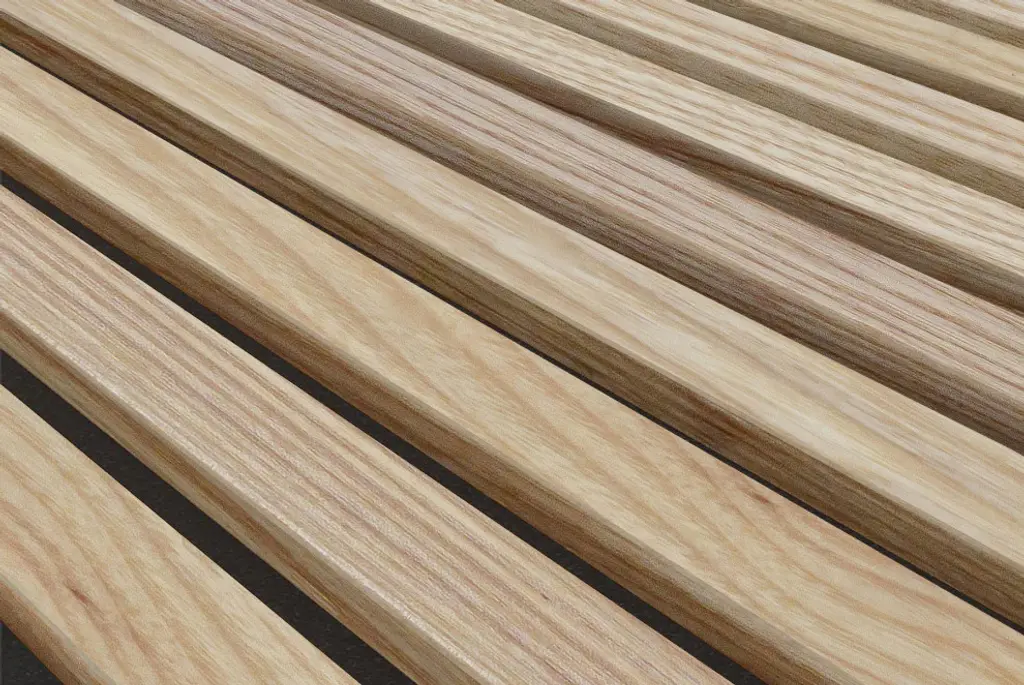 WHITE ASH SOLID WOOD SLAT WALL PANELSOur White Ash Solid Wood Slat Wall Panels, crafted from 100% solid White Ash wood. Renowned for its durability and stunning beige color, White Ash features an attractive smooth, straight grain, making it a premier choice for interior décor and furnishings. Whether your style is contemporary or mid-century modern, the look of White Ash is perfect for creating a captivating space.✅SPECIFICATIONS: Our Solid Wood Slat Wall Panels are meticulously hand-treated to enhance their natural beauty and ensure maximum wear-resistance. Each box contains a pair of wood wall panels, with each wood slat wall panel measuring 46 x 20 11/16 x 7/8 inches. These wood panels for walls can be seamlessly joined together, allowing you to effortlessly create a professional-looking DIY wood slat wall.✅FOR DIYERS & PROFESSIONALS: We have designed our slatted wood wall panels to be an easy DIY home project. With just a few common tools such as a circular saw, screws, and/or construction adhesive, you can bring your vision to life. These wood wall panels are versatile and can be applied to walls, ceilings, alcoves, windows, and even gently curved surfaces. ✅ENHANCE SOUND QUALITY: Woody Walls White Ash Solid Wood Slat Wall Panels are engineered to deliver exceptional acoustic performance. By reducing echoes and reverberations, each slat wall panel absorbs and scatters stray noise, improving the overall sound quality of your space.✅BRING YOUR DÉCOR DREAMS TO LIFE: The genuine beauty of our acoustic wood panels adds an enchanting touch to any room. Whether you prefer a contemporary or classic mid-century modern style, these wood panels for walls provide a cost-effective way to upgrade your walls, giving them a captivating aesthetic that will leave a lasting impression.Elevate your space with the elegance of solid wood slatted wall panels. Experience the perfect blend of style and acoustic performance. Explore our collection of slat wall paneling and bring your vision to life with Woody Walls.