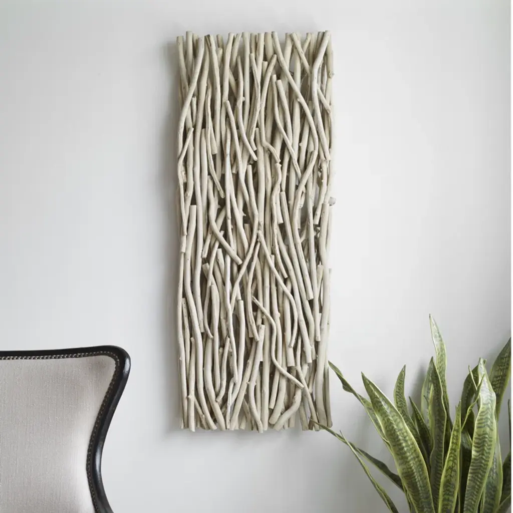This Oversized Wood Wall Panel Is Artfully Created From Teak Branches In A Contemporary Black Finish. May Be Hung horizontally or vertically.
