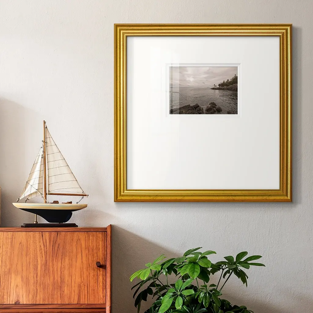 SolitaryPremium Framed Print A framed cold pressed paper print featuring superior double matting and quality frame. 2 SIZES AVAILABLE 16''X16''' - Overall Size 20''X20''' - Overall Size Each piece is made to order. Each piece comes with hanging hardware. Made in the USA Ready to Hang Giclee Paper Print Plexiglass Beveled Matt Board Double Matte Board