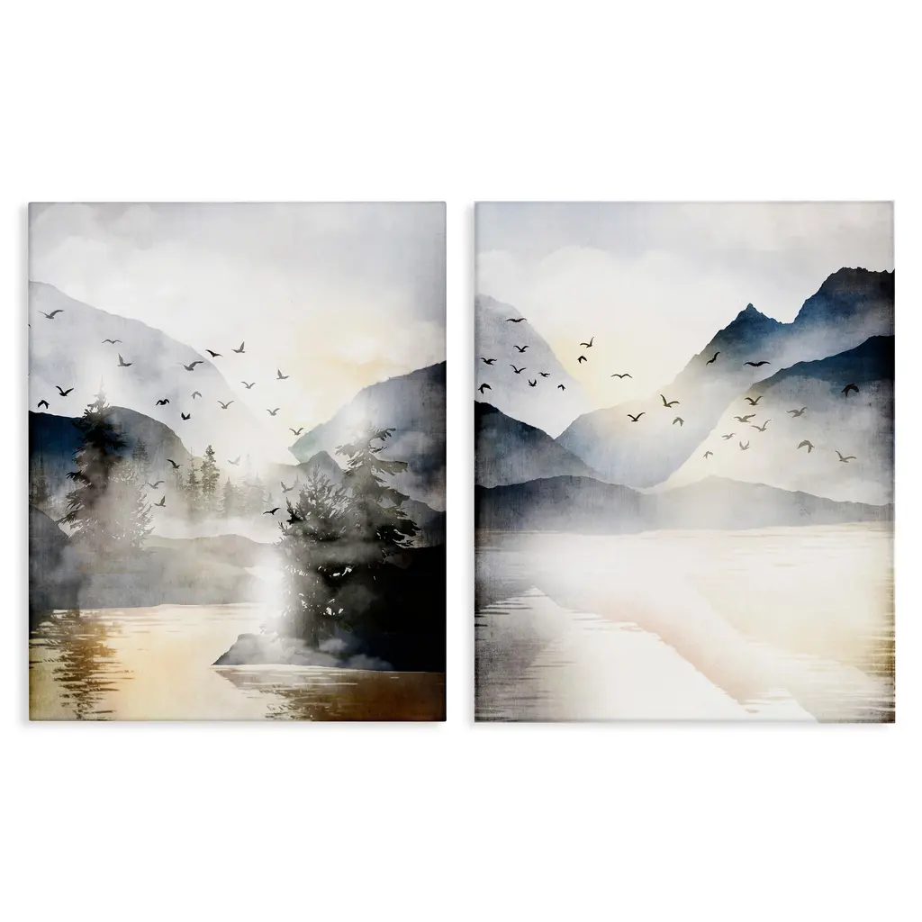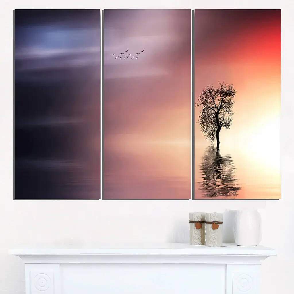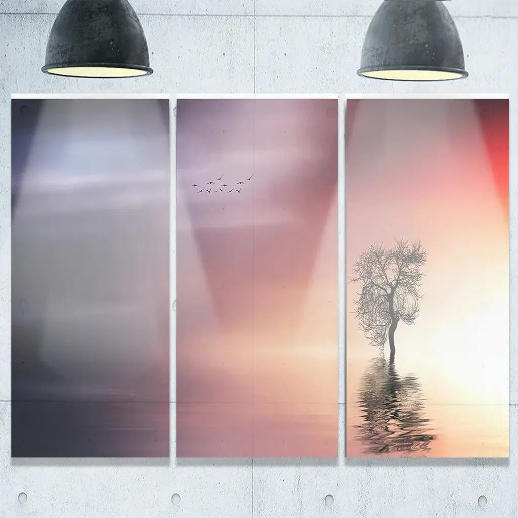 "Solitude Tree And Flying Birds" Metal Landscape, 3 Panels, 36"x28"