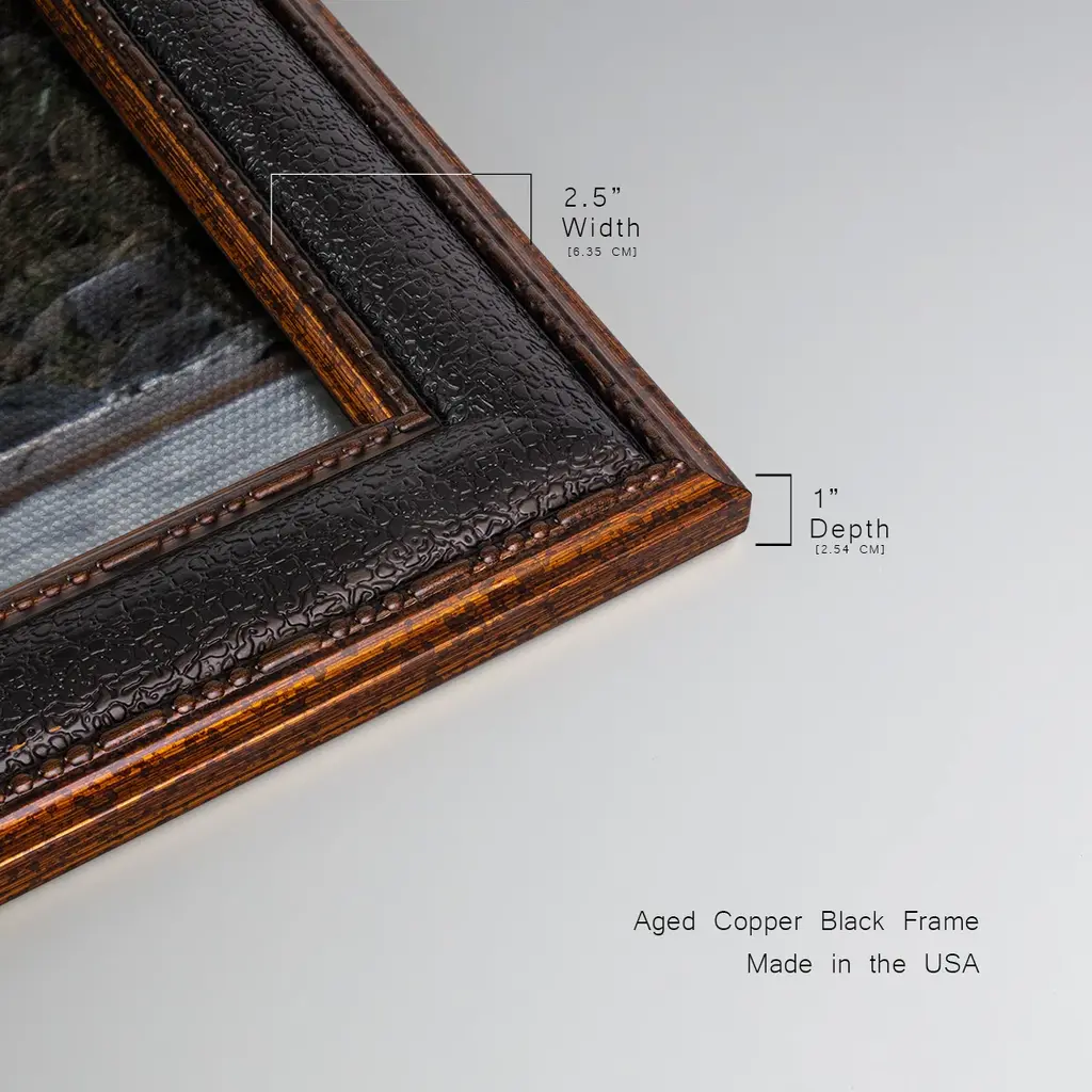 Solo Flight Premium Framed Canvas- Ready to Hang A Premium Framed Canvas created to last. Framed in distressed wood and available in an array of sizes and colors Featuring a beveled a solid wood stretcher bar, each piece comes ready to hand 3 SIZES AVAILABLE 21''X37'' - Overall Size 25''X45'' - Overall Size 29''x53'' - Overall Size Each piece is made to order. Each piece comes with hanging hardware. Made in the USA Ready to Hang Giclee Paper Print Acrylic Glass Beveled Matt Board