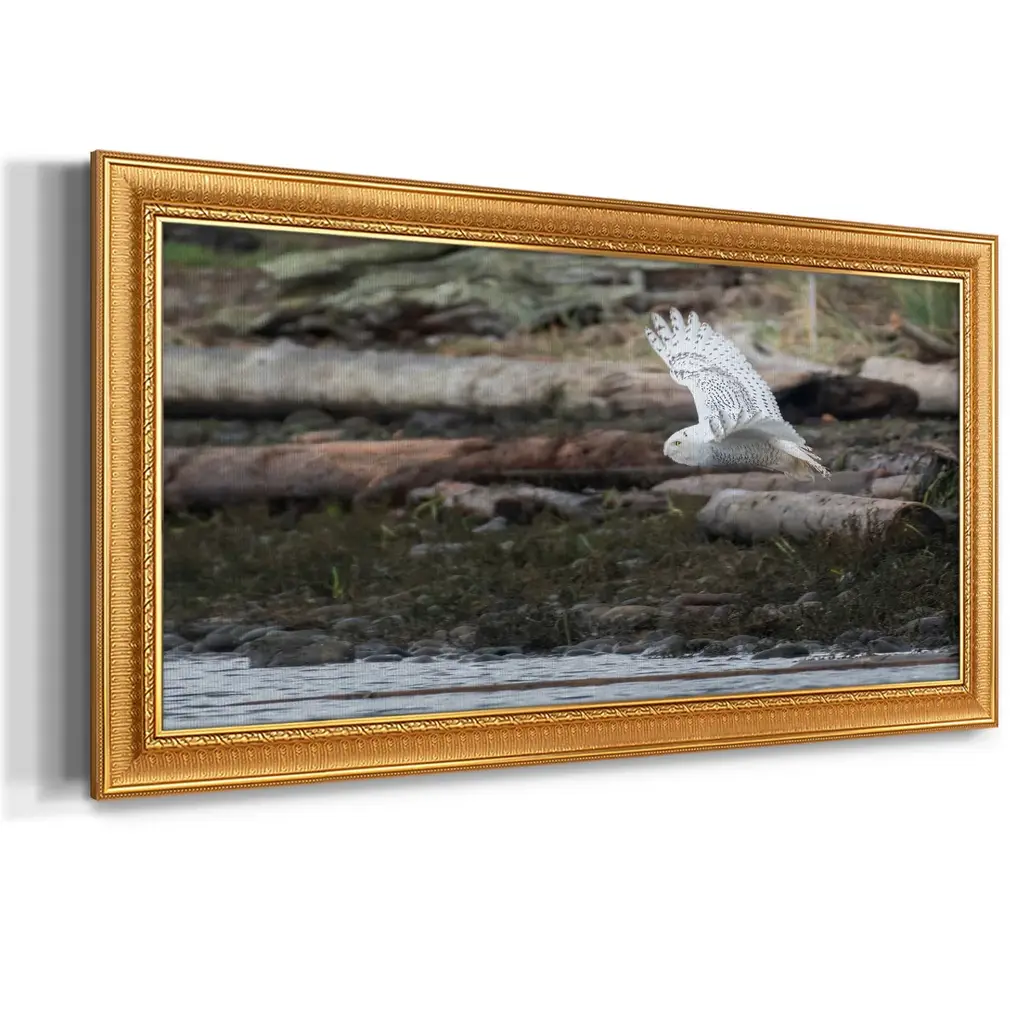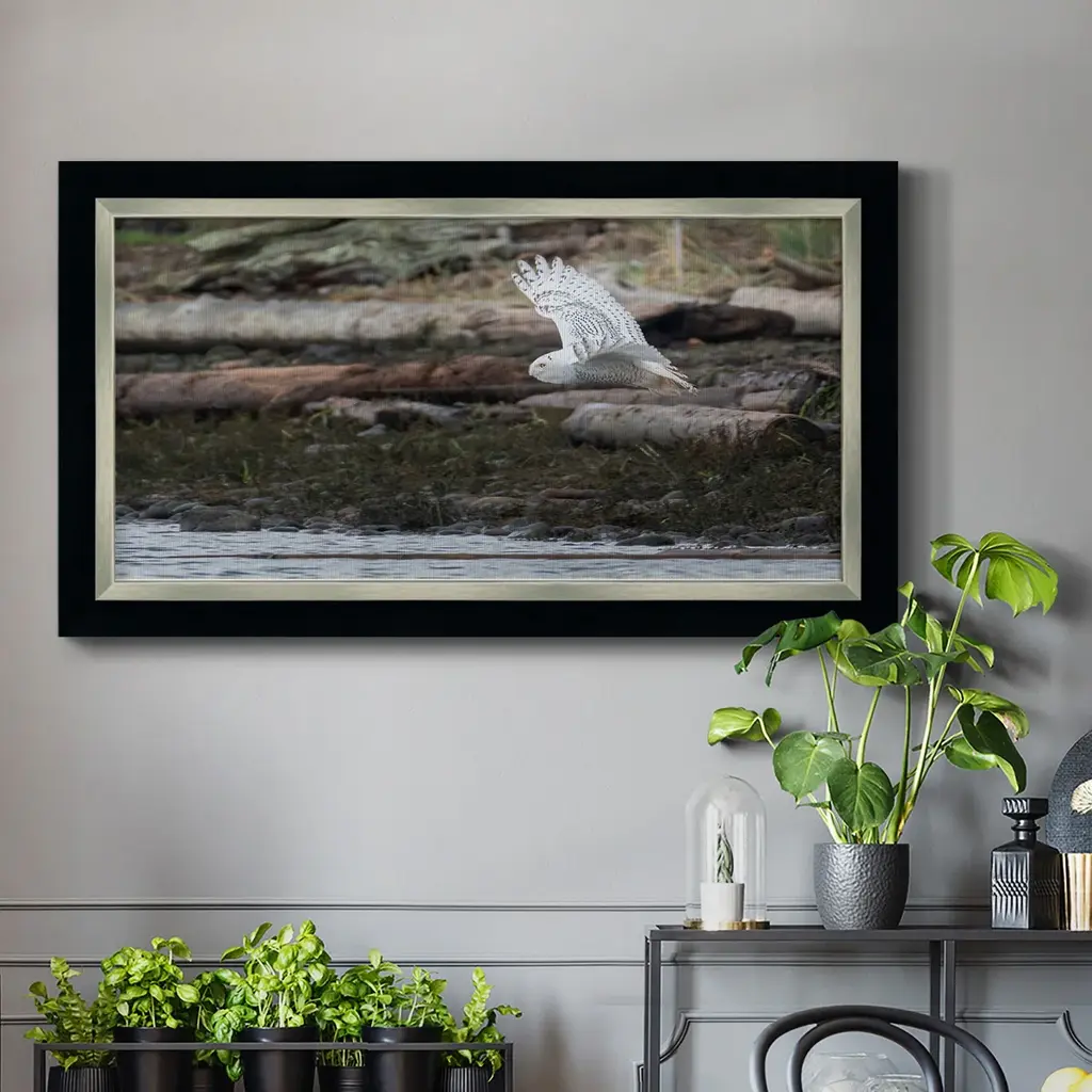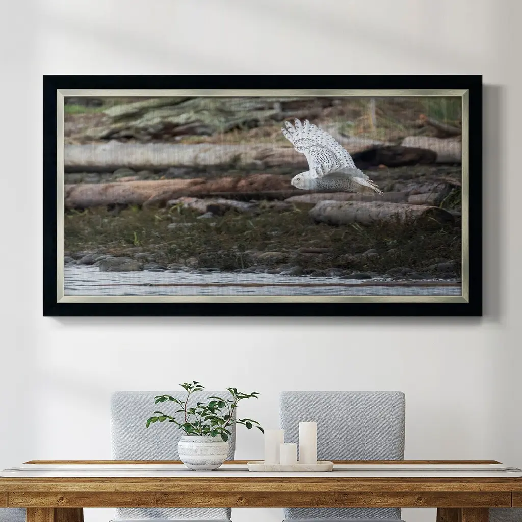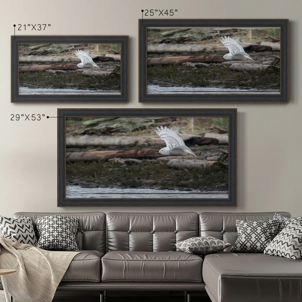 Solo Flight Premium Framed Canvas- Ready to Hang A Premium Framed Canvas created to last. Framed in distressed wood and available in an array of sizes and colors Featuring a beveled a solid wood stretcher bar, each piece comes ready to hand 3 SIZES AVAILABLE 21''X37'' - Overall Size 25''X45'' - Overall Size 29''x53'' - Overall Size Each piece is made to order. Each piece comes with hanging hardware. Made in the USA Ready to Hang Giclee Paper Print Acrylic Glass Beveled Matt Board
