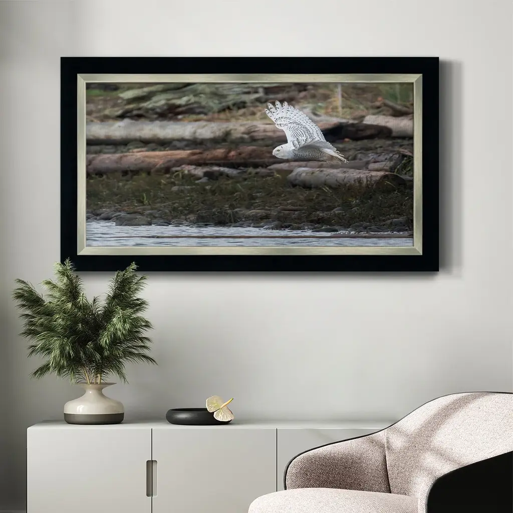Solo Flight Premium Framed Canvas- Ready to Hang A Premium Framed Canvas created to last. Framed in distressed wood and available in an array of sizes and colors Featuring a beveled a solid wood stretcher bar, each piece comes ready to hand 3 SIZES AVAILABLE 21''X37'' - Overall Size 25''X45'' - Overall Size 29''x53'' - Overall Size Each piece is made to order. Each piece comes with hanging hardware. Made in the USA Ready to Hang Giclee Paper Print Acrylic Glass Beveled Matt Board