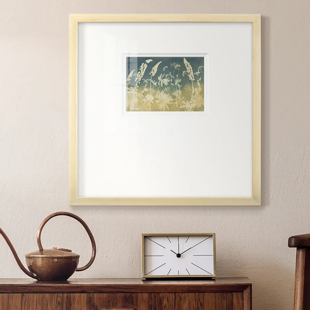 Solstice LupinePremium Framed Print A framed cold pressed paper print featuring superior double matting and quality frame. 2 SIZES AVAILABLE 16''X16''' - Overall Size 20''X20''' - Overall Size Each piece is made to order. Each piece comes with hanging hardware. Made in the USA Ready to Hang Giclee Paper Print Plexiglass Beveled Matt Board Double Matte Board