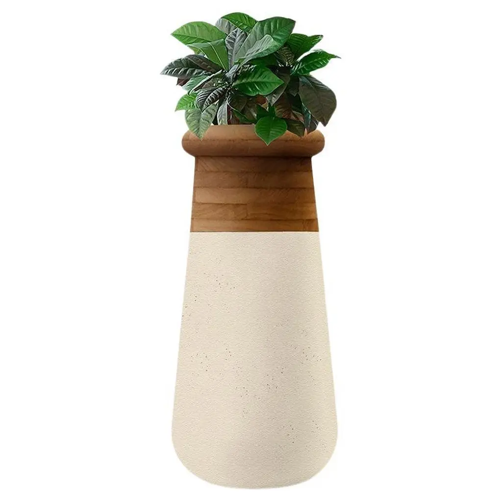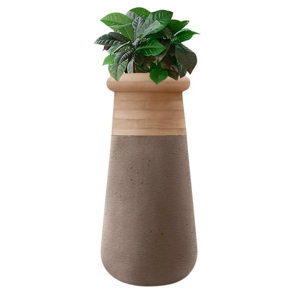 Soma Slim Oiled Wood And Black Stone Planter by IndigenusDesigned by Laurie Wiid van HeerdenDimensions: Ø 55,8 x H 120 cm.Materials: Wood and stone.Weight: 65 kg.Available in natural/oiled wood or stone. Different colors and sizes are available. Please contact us.Soma is the Greek word for “body” and Laurie Wiid van Heerden’s design of the Soma is inspired by the body of a tree. The trunk-like shape carries leaves towards the sky raising them upwards and above other plants. The Soma planters, some of which are substantial in size, do the same and lift beautiful plants via a curvaceous tree trunk likeness which could include timber as part of the tree's body.Indigenus, founded in 2014, is the brainchild of Cape Town local, Peter van der Post. At the beginning of his career, whilst working in roto-moulding, Peter noticed a lack of high design planters in the market and the vision to produce the most beautiful, original, and desirable planters began to grow. Over the past 8 years, the Indigenus team has collaborated with South Africa’s top designers to create planters that are art pieces in their own right. 2022 has seen exciting collaborations further afield with internationally renowned designers and collaborators. In line with our sustainability and quality luxury objectives, we are constantly striving to make planters for life and not just for a few seasons. It has taken years of refinement, many valuable lessons learned and, ultimately, setting up our world-class factory for in-house manufacturing to be able to ensure that the planters are of the highest quality. All materials are sustainably sourced and the planters are made by hand. It is this craftsmanship that puts Indigenus in a league of its own. Each range of planters is unique and illustrates the impact that beautiful sculptural planters have on architecture and landscapes. The planters' close connection to the earth is expressed through a stable and grounded design, made with beautiful natural materials and evoking an underlying story of our relationship with the natural world.Indigenus is focused on collaboration with the world’s top designers and artists. We are committed to constant refinement and a willingness to be courageous, curious, and experimental with natural materials and new designs. We have built solid distributor networks and relationships that we are committed to maintaining and growing globally. We are proud of our roots as an African luxury brand with a global footprint.