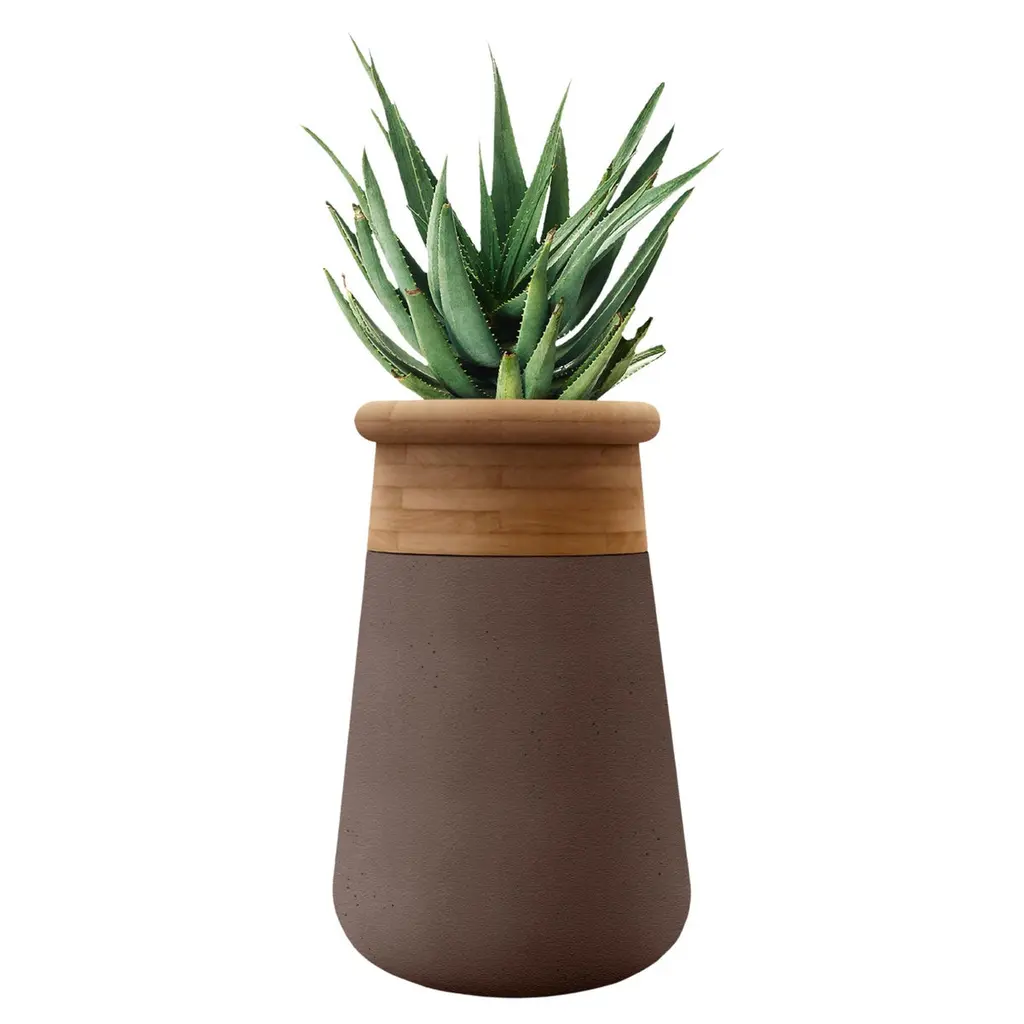 Soma Small Black Stone Planter by IndigenusDesigned by Laurie Wiid van HeerdenDimensions: Ø 70 x H 70,3 cm.Materials: Stone.Weight: 55 kg.Available in natural/oiled wood or stone. Different colors and sizes are available. Please contact us.Soma is the Greek word for “body” and Laurie Wiid van Heerden’s design of the Soma is inspired by the body of a tree. The trunk-like shape carries leaves towards the sky raising them upwards and above other plants. The Soma planters, some of which are substantial in size, do the same and lift beautiful plants via a curvaceous tree trunk likeness which could include timber as part of the tree's body.Indigenus, founded in 2014, is the brainchild of Cape Town local, Peter van der Post. At the beginning of his career, whilst working in roto-moulding, Peter noticed a lack of high design planters in the market and the vision to produce the most beautiful, original, and desirable planters began to grow. Over the past 8 years, the Indigenus team has collaborated with South Africa’s top designers to create planters that are art pieces in their own right. 2022 has seen exciting collaborations further afield with internationally renowned designers and collaborators. In line with our sustainability and quality luxury objectives, we are constantly striving to make planters for life and not just for a few seasons. It has taken years of refinement, many valuable lessons learned and, ultimately, setting up our world-class factory for in-house manufacturing to be able to ensure that the planters are of the highest quality. All materials are sustainably sourced and the planters are made by hand. It is this craftsmanship that puts Indigenus in a league of its own. Each range of planters is unique and illustrates the impact that beautiful sculptural planters have on architecture and landscapes. The planters' close connection to the earth is expressed through a stable and grounded design, made with beautiful natural materials and evoking an underlying story of our relationship with the natural world.Indigenus is focused on collaboration with the world’s top designers and artists. We are committed to constant refinement and a willingness to be courageous, curious, and experimental with natural materials and new designs. We have built solid distributor networks and relationships that we are committed to maintaining and growing globally. We are proud of our roots as an African luxury brand with a global footprint.