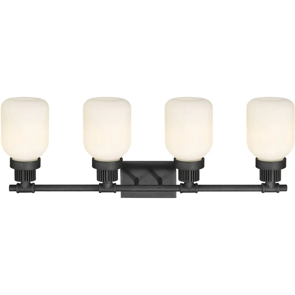 Truly a restoration design, the Somers Collection features stylized iron pipe fittings on the frame and sturdy gear shaped glass holders. The jar inspired glass shades are ideally paired with either the textured black and weathered iron finish.
