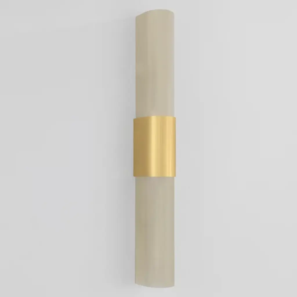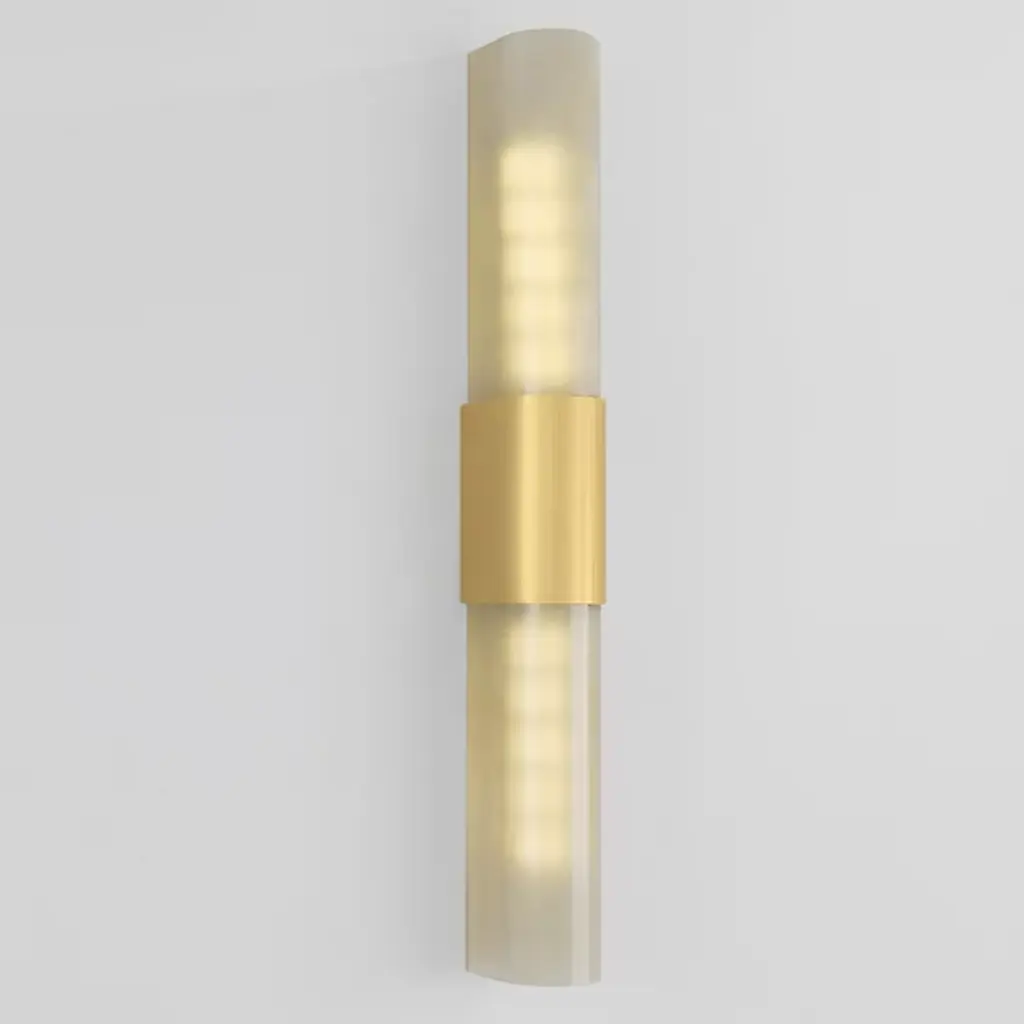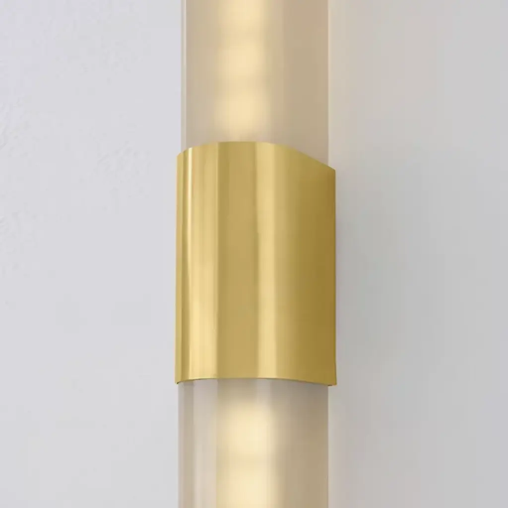 The Somersville Vanity Light from Hudson Valley Lighting adapts the family's signature style for bathroom applications. The cylindrical glass shade features internal etching that transforms harsh light into a gentle glow. Each mounting bracket is precisely engineered to support the glass while maintaining clean lines. This fixture provides ideal illumination for daily grooming tasks while maintaining a refined appearance.