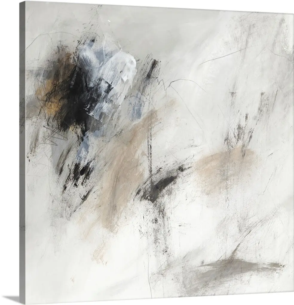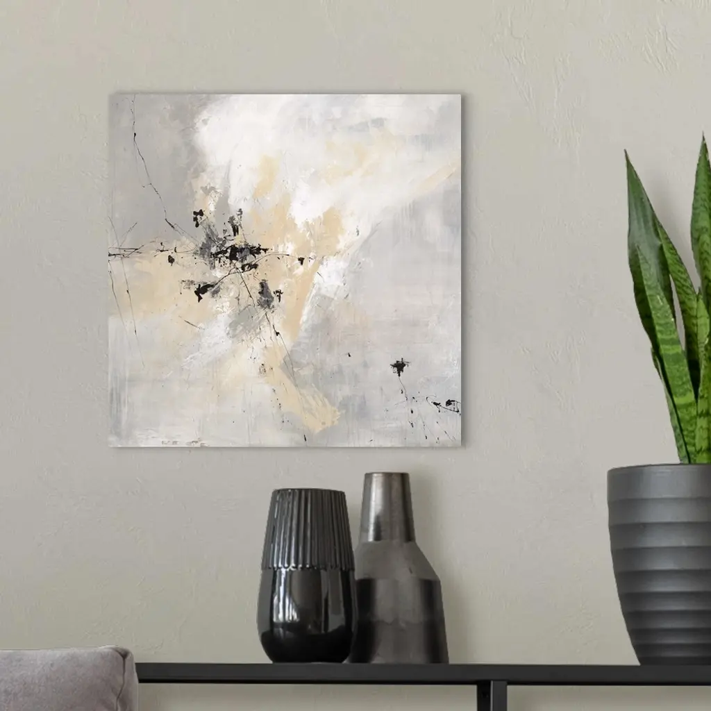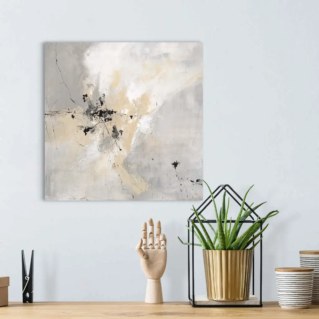 Contemporary abstract artwork in pale shades of grey and beige.