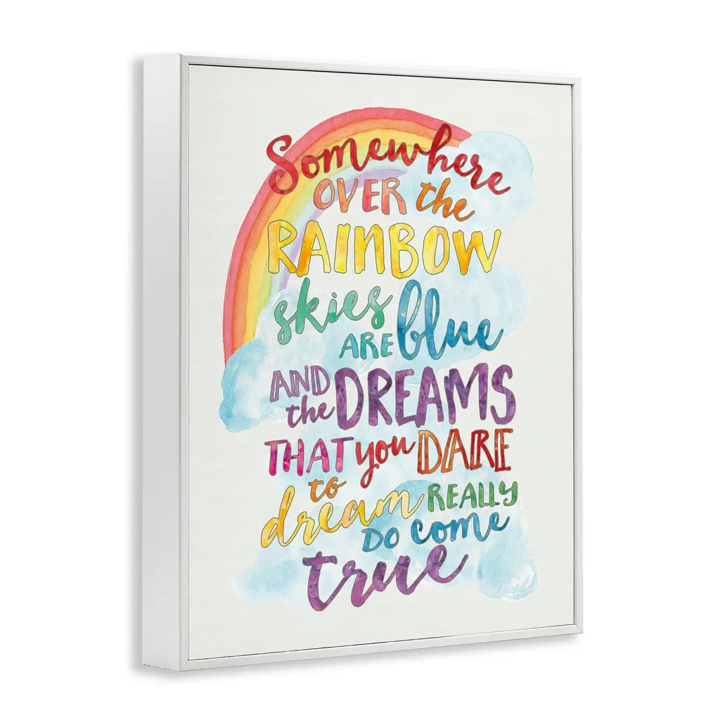 Somewhere Over The Rainbow With Rainbow Framed Wall Art - 11 X 14 - Wood - White