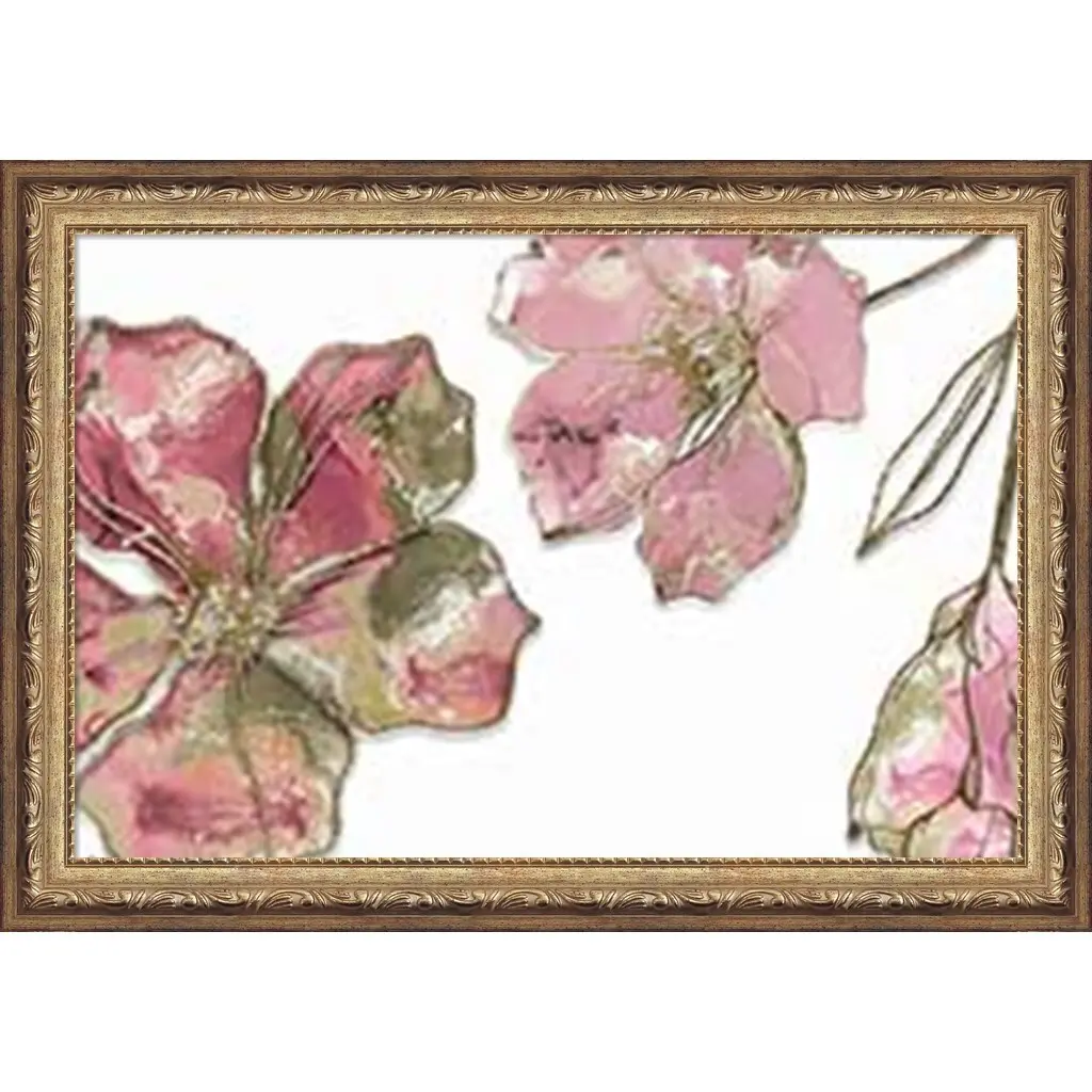 Muted Glam II by Sophie 6 is a high quality piece of framed artwork. The finished size of this piece is 20" X 14". It has a Slim Champagne Silver and Gray with Ornate Floral Detail frame and is finished with high quality Acrylic Plexiglass. 100% Satisfaction Guaranteed.