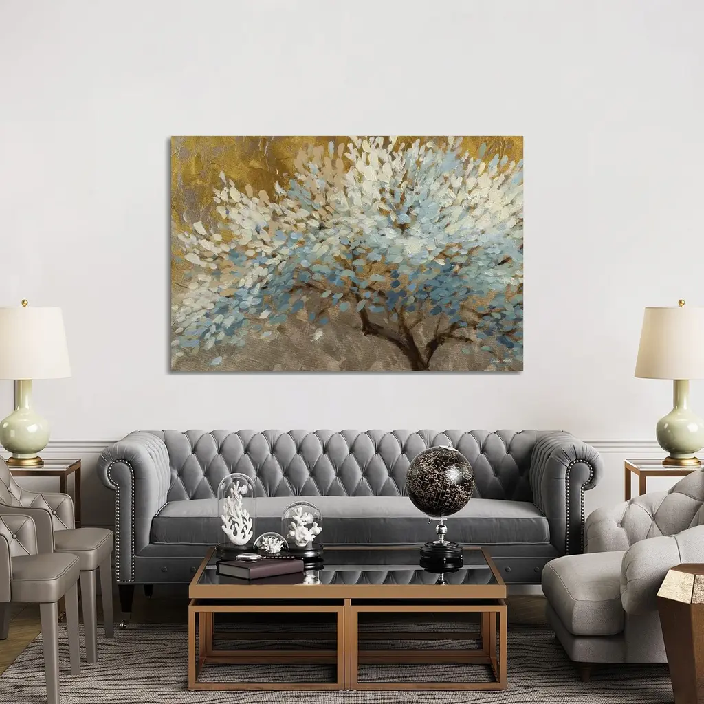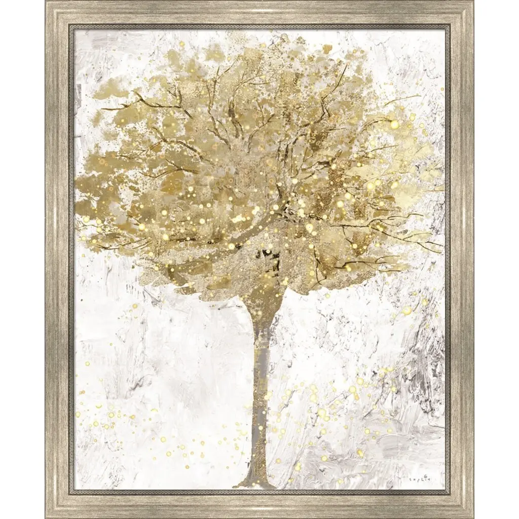 Sparkle Tree by Sophie 6 is a high quality piece of framed artwork. The finished size of this piece is 25.75" X 31". It has a Classic Champagne Silver with Ornate Inner Edge frame and is finished with high quality Acrylic Plexiglass. 100% Satisfaction Guaranteed.