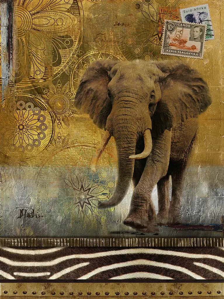 Taste of Africa Elephant by Sophie 6 is a high quality piece of canvas artwork. The finished size of this piece is 24" X 24", and it has a depth 1.5" with nutmeg painted sides. There is a UV protective coating over the entire image, and it is ready to hang on your wall with no hardware required. 100% Satisfaction Guaranteed.