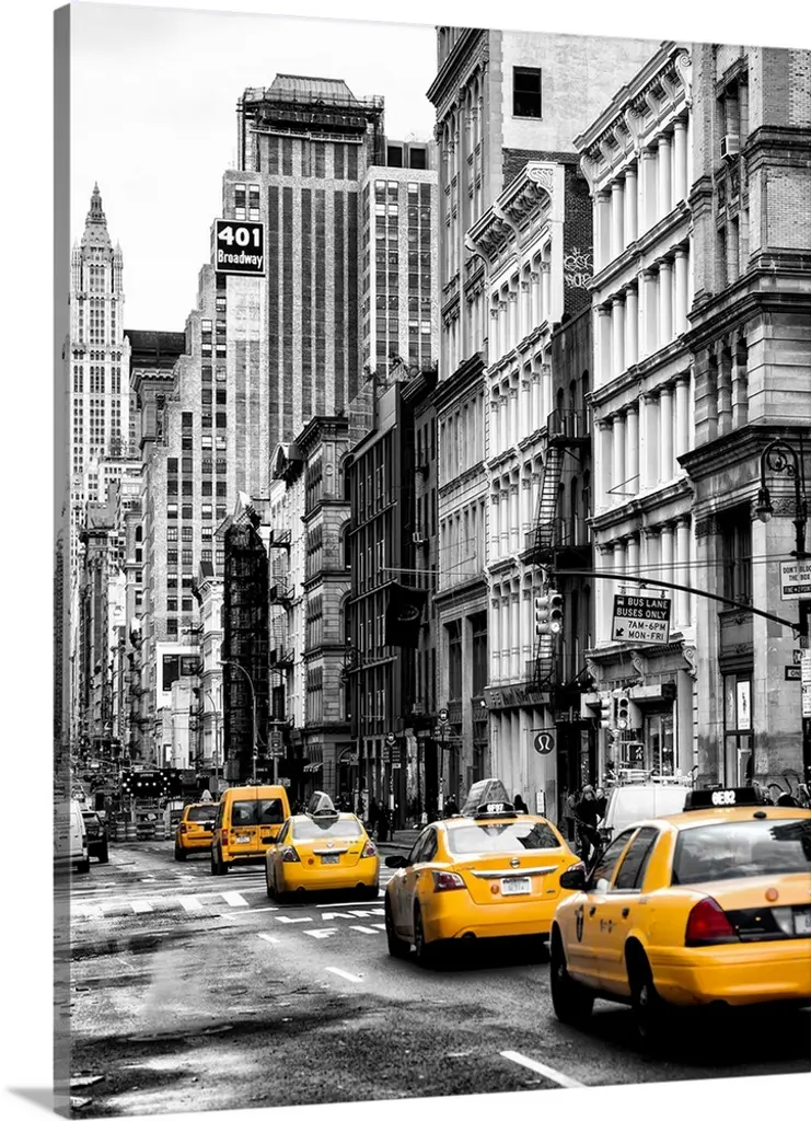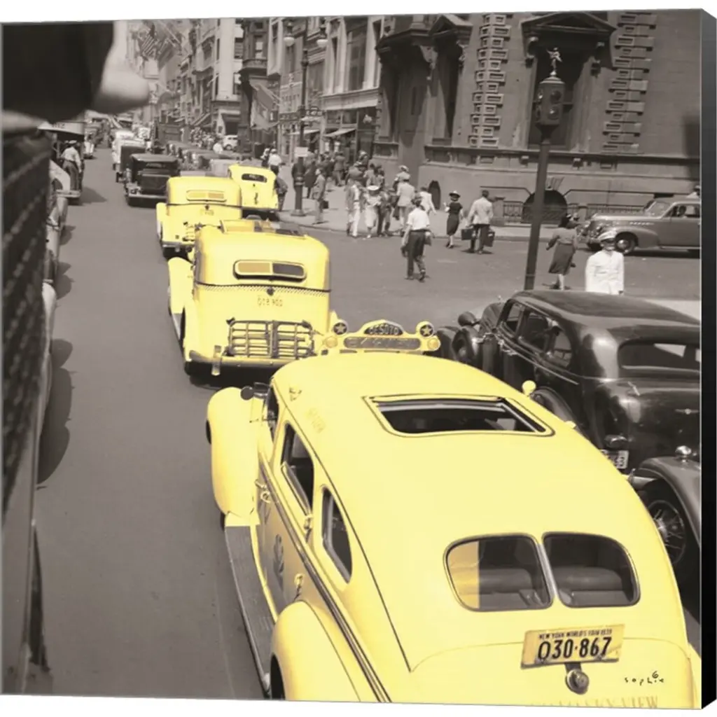 Yellow Cabs by Sophie 6 is a high quality piece of canvas artwork. The finished size of this piece is 12" X 12", and it has a depth 1.5" with black painted sides. There is a UV protective coating over the entire image, and it is ready to hang on your wall with no hardware required. 100% Satisfaction Guaranteed.