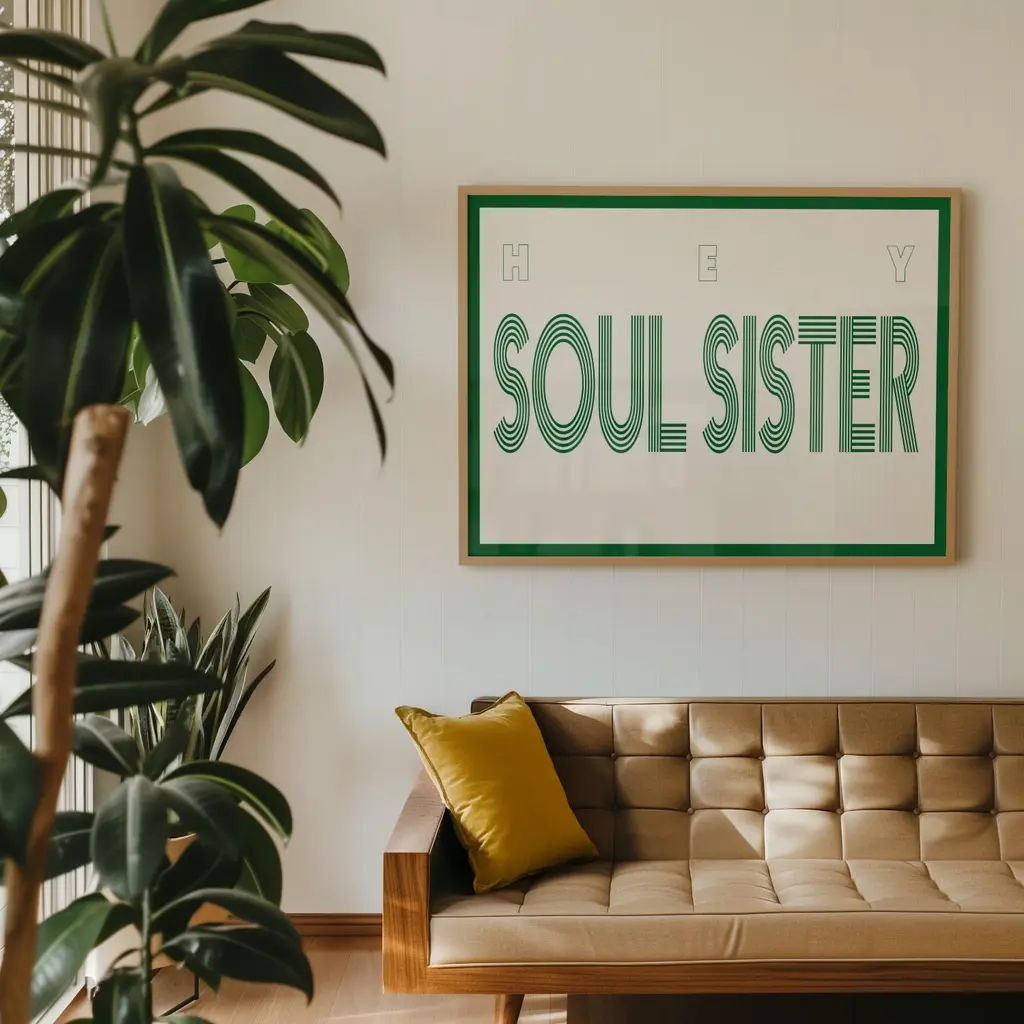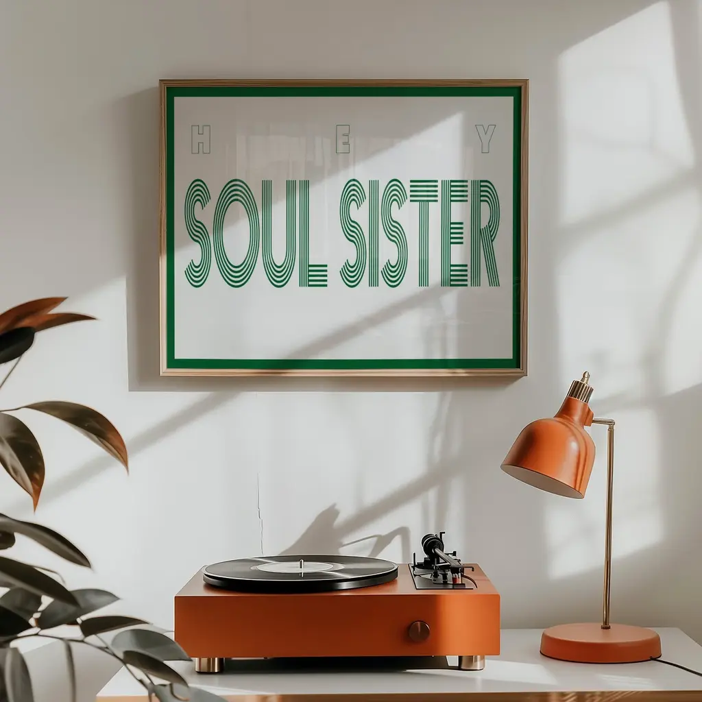 Soul Sister Retro Music Horizontal Giclée Art Print Sold without frameGiclée printed on Munken pure smooth cream paper which is certified by the Rainforest Alliance Program for FSC® Standards.Designed by Fanclub owners and sisters, Johanna and Felicity in our UK studio.