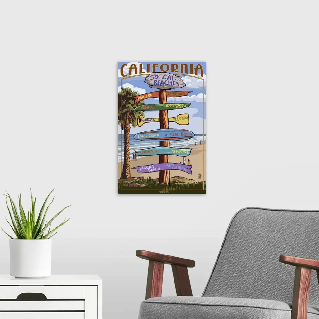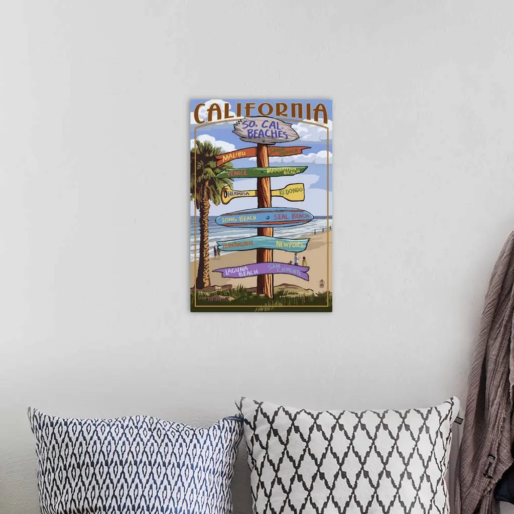Southern California Beaches - Destination Sign: Retro Travel Poster wall art for home and office decor. Discover canvas art prints, photos, mural, big canvas art and framed wall art in GreatBigCanvas.com's varied collections.