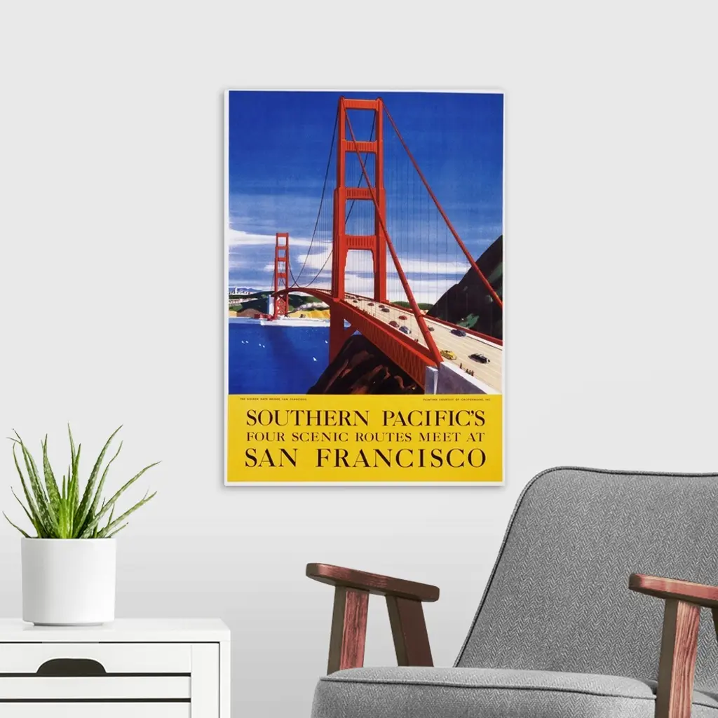 Southern Pacific's Four Scenic Routes Meet At San Francisco Travel Poster wall art for home and office decor. Discover canvas art prints, photos, mural, big canvas art and framed wall art in GreatBigCanvas.com's varied collections.