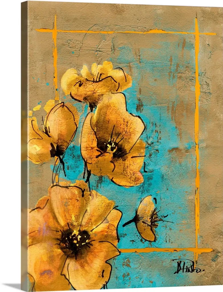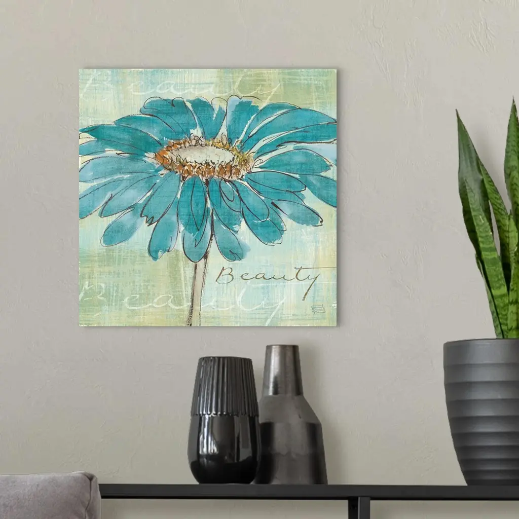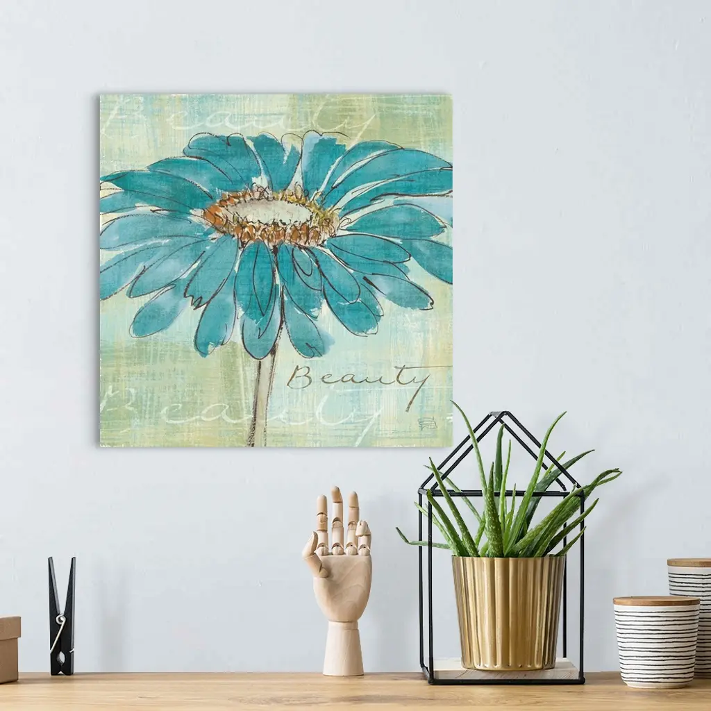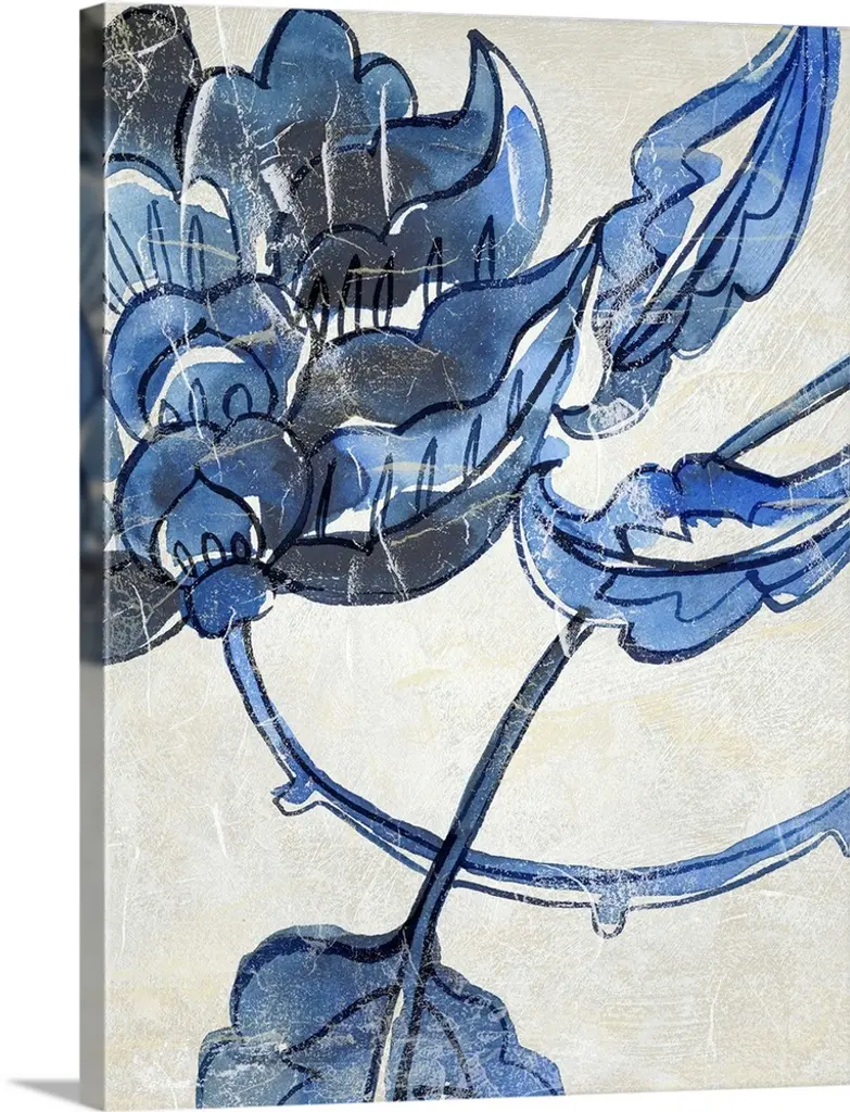 Contemporary painting of a blue flower close-up in the frame of the image.