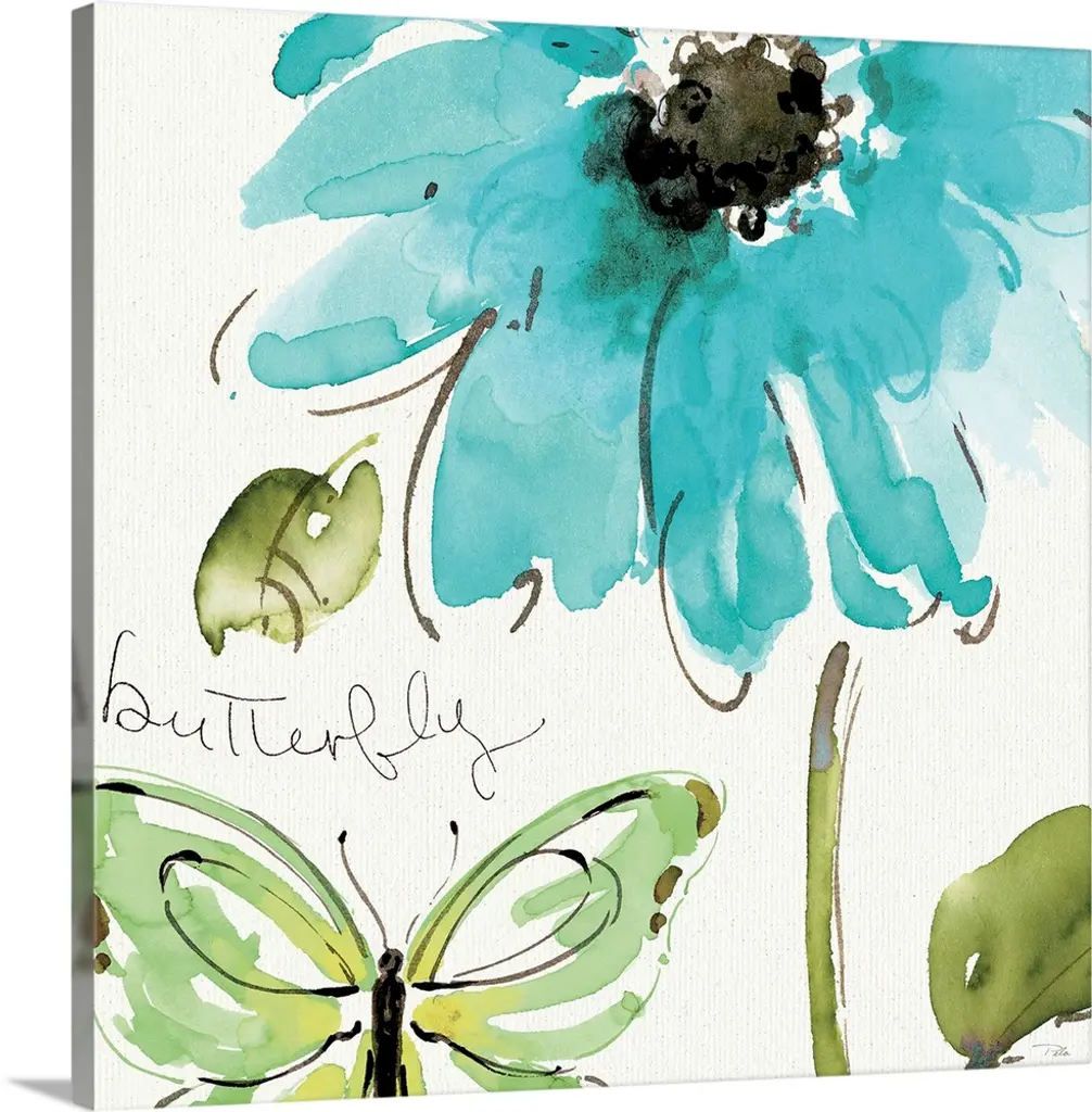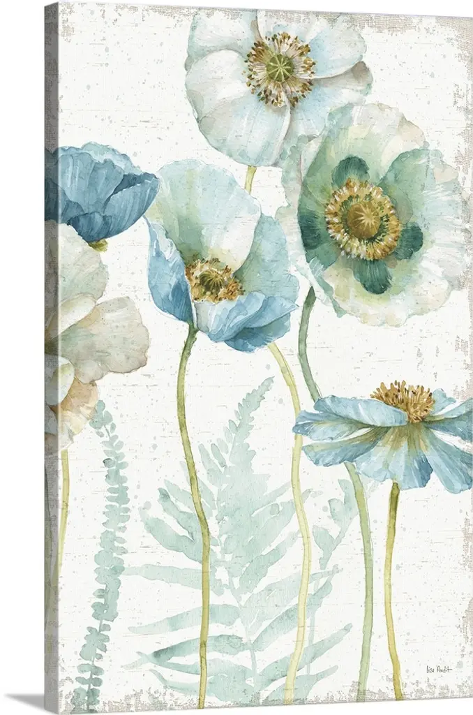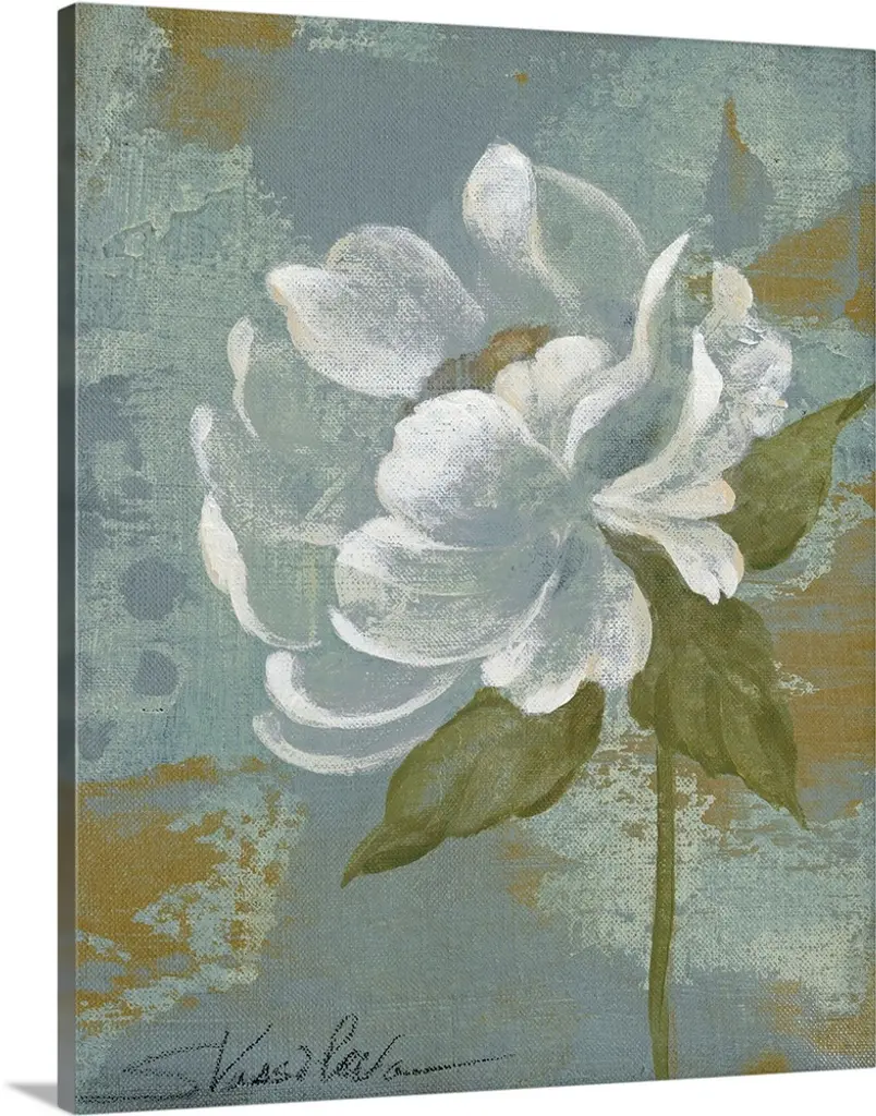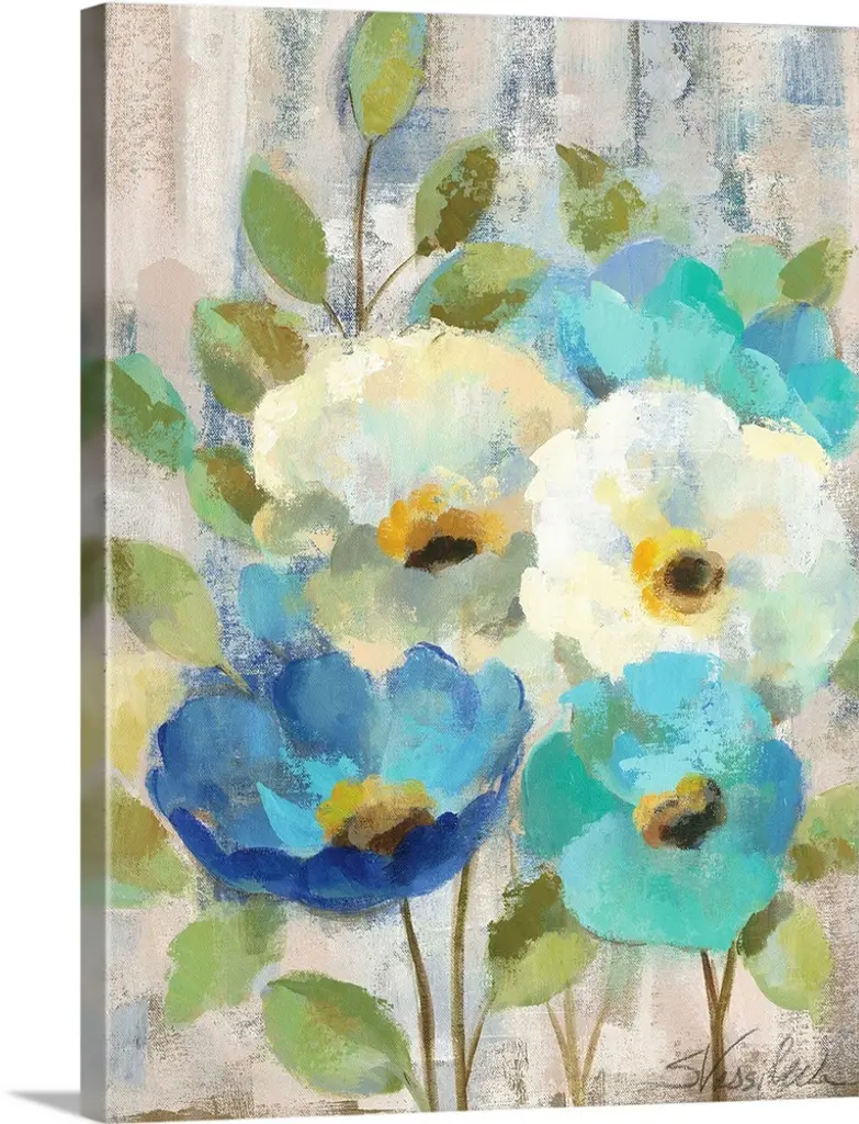 Contemporary painting of a blue flower close-up in the frame of the image.
