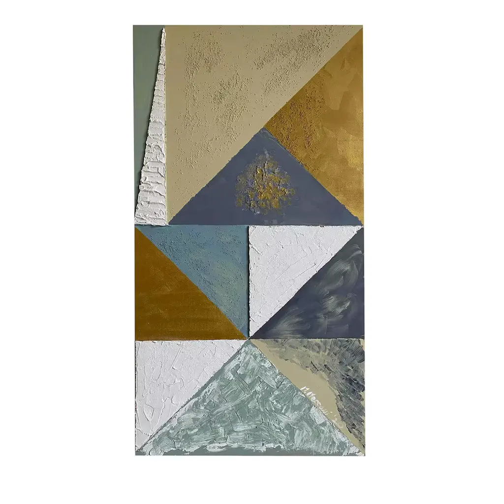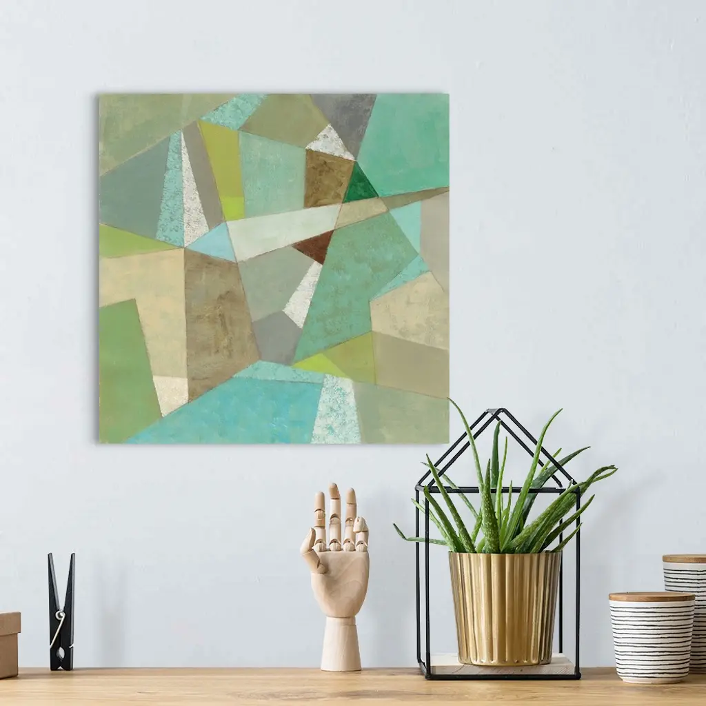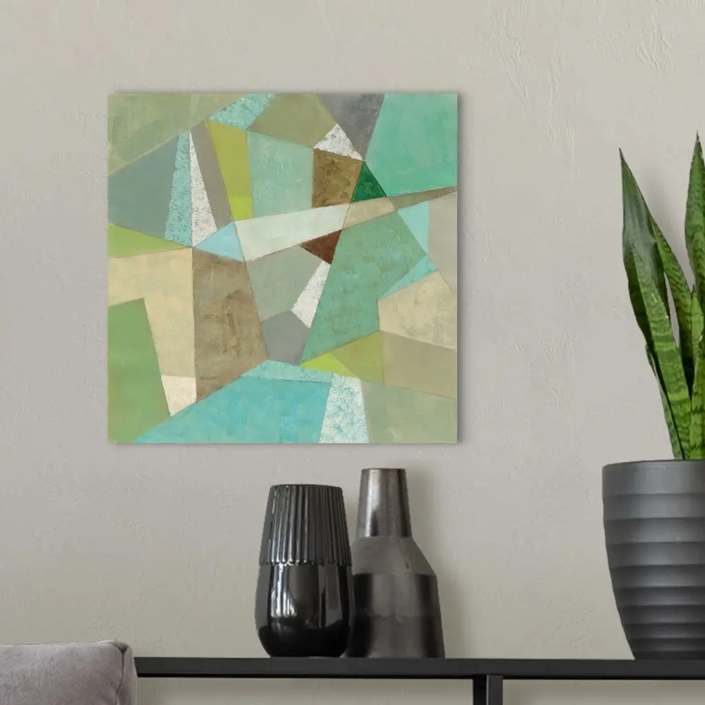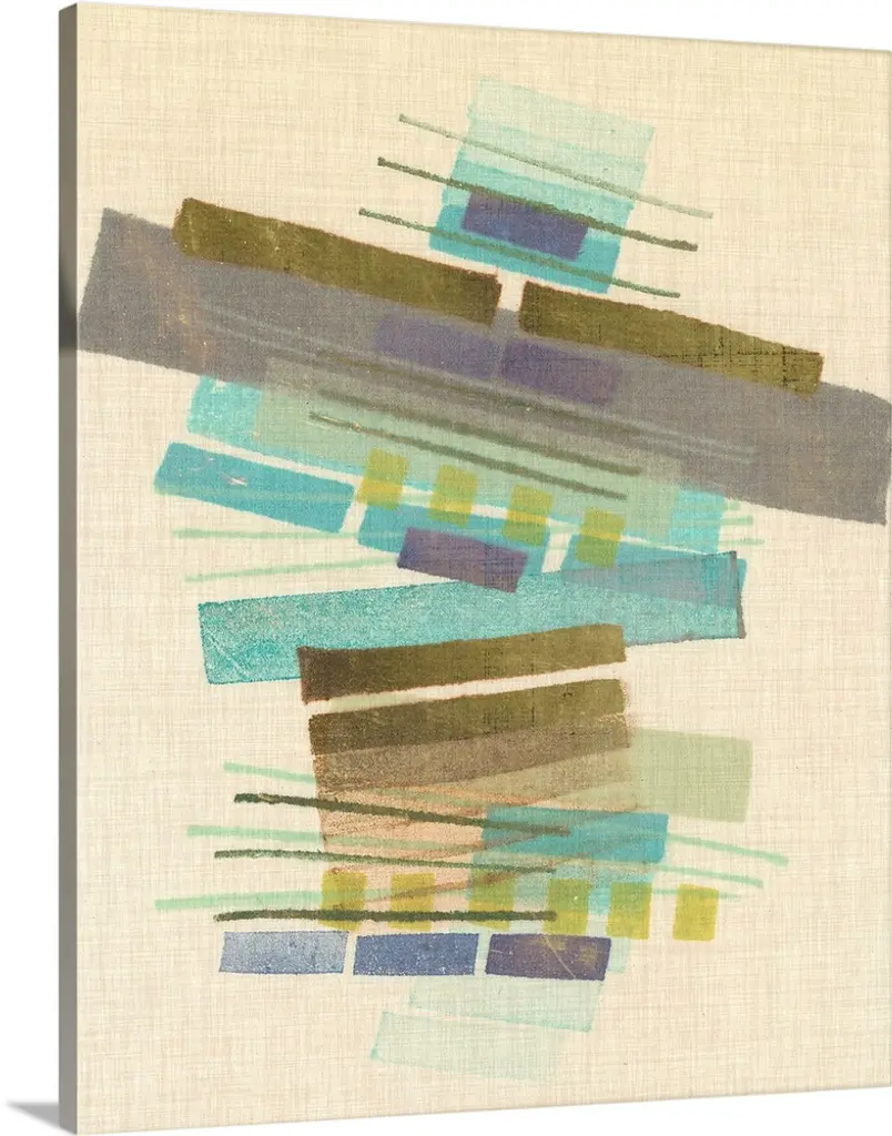 Contemporary artwork with a retro mid-century vibe of a geometric shapes in various colors.