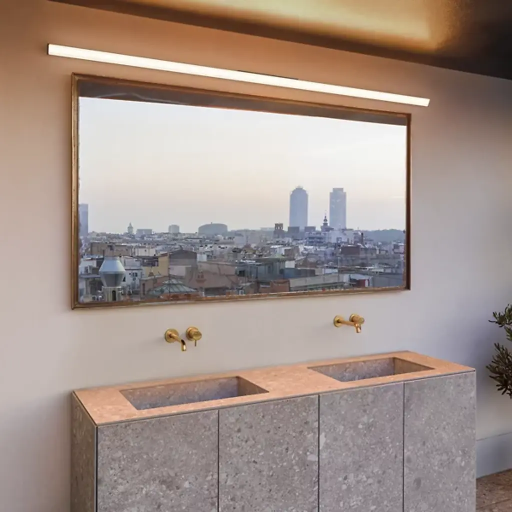The Spa LED Vanity Light by Vibia delivers bright, glare-free illumination through a clean, streamlined design. Created by Ramos & Bassols and ideal for wellness-focused spaces, this sleek fixture is also a perfect fit above a mirror, where clear, flattering light is essential. Its slim aluminum frame encases a PMMA diffuser that softens the damp-rated LED output, creating a comfortable glow. ADA-compliant and low-profile, it sits close to the wall when installed over a mirror for diffused lighting. The result is focused, functional illumination that enhances without overwhelming.