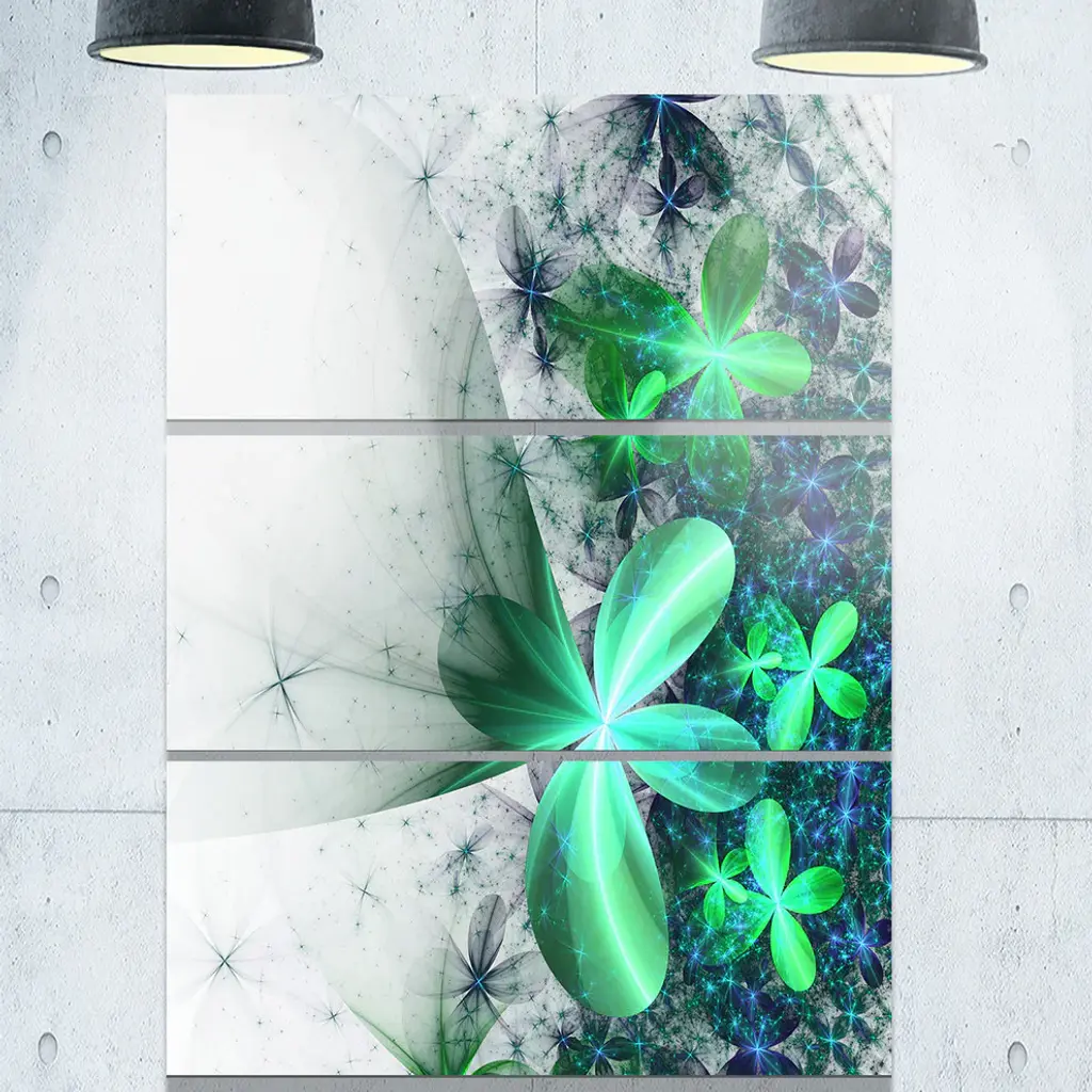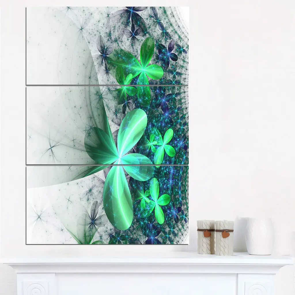 "Sparkling Green And Blue Fractal Flower" Metal Wall Art, 3 Panels, 28"x36"