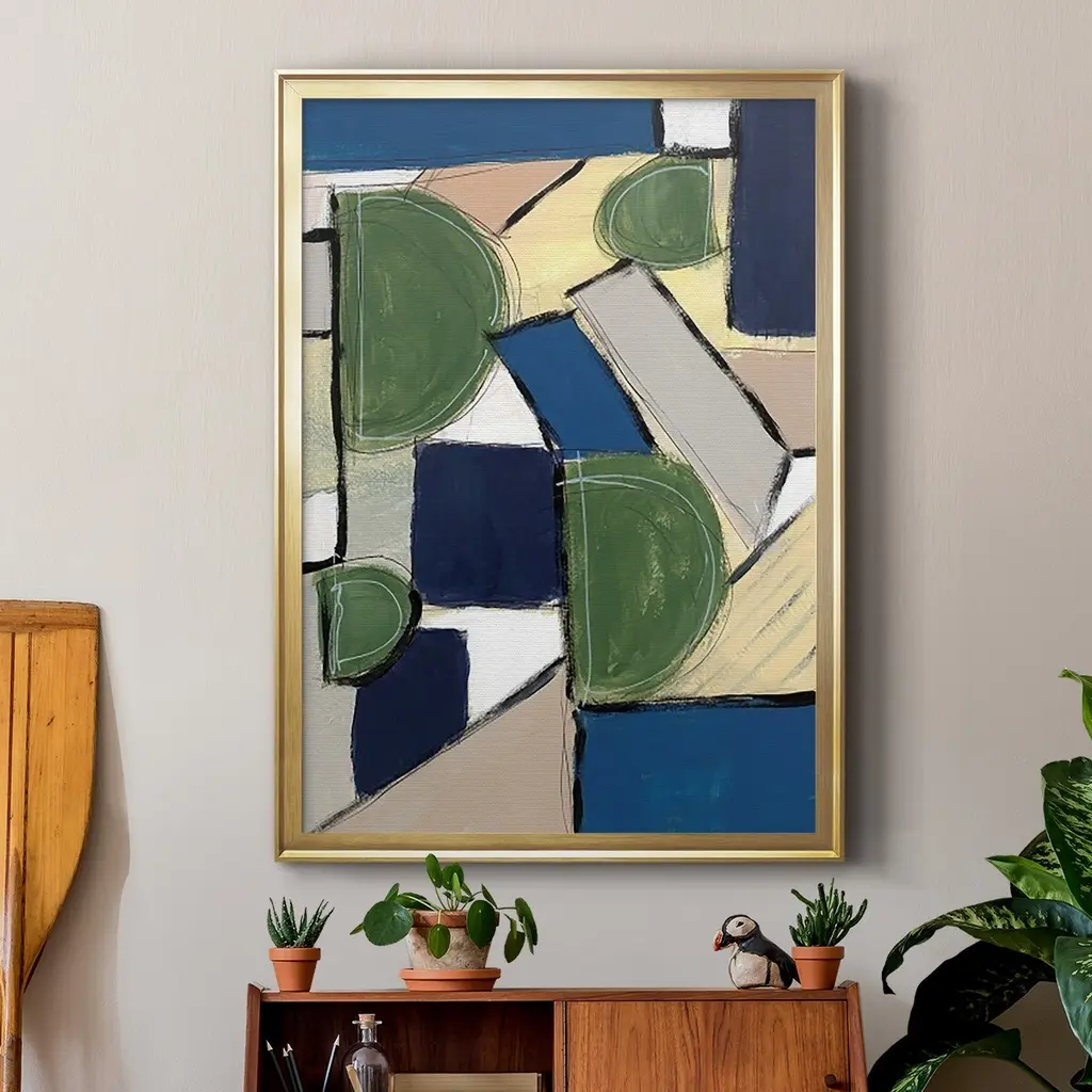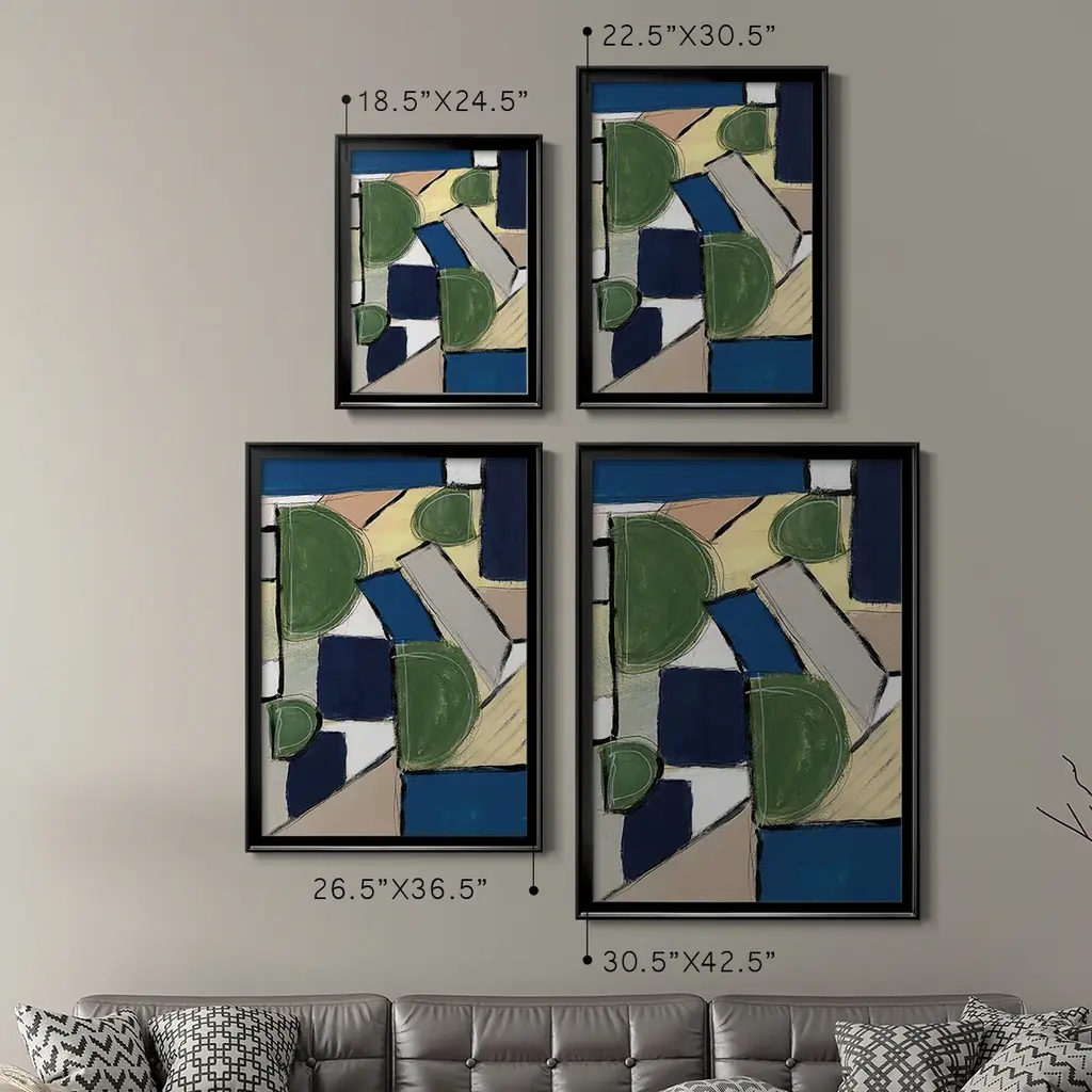 Spatial Mix I Premium Framed Print - Ready to Hang A Premium Framed Print created to last. Framed in distressed wood and available in an array of sizes and colors Featuring a beveled a solid wood stretcher bar, each piece comes ready to hand 4 SIZES AVAILABLE 30.5''X42.5'' - Overall Size 26.5'X36.5'' - Overall Size 22.5''x30.5'' - Overall Size 18.5''x24.5'' - Overall Size Each piece is made to order. Each piece comes with hanging hardware. Made in the USA Ready to Hang