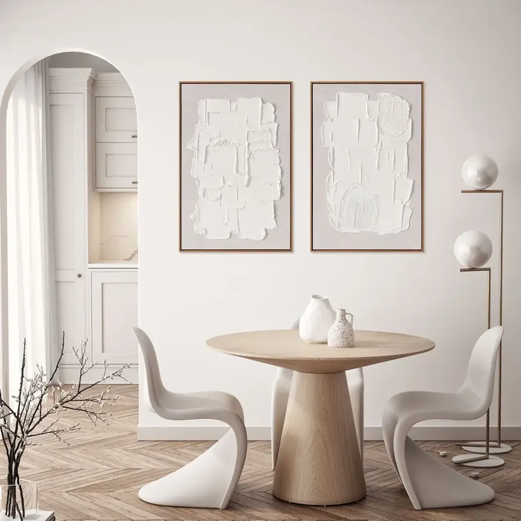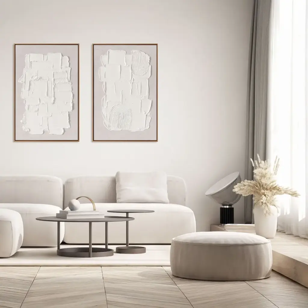 Spatula is a hand-painted abstract artwork on canvas. On a neutral background, thick white strokes of textured paint are applied with a spatula. The highly tactile surface makes each piece unique, celebrating raw materiality and expressive gesture. With an internal wooden frame and external wooden frame, the painting is ready to hang.The AGAVE Quadri collection represents the excellence of contemporary art applied to the world of interior design. Each piece, hand-painted with artisanal techniques by the finest artists in collaboration with the Italian company AGAVE, combines abstract, natural, and figurative elements to create unique and refined works. These paintings transform spaces into environments of great elegance and character, perfect for interior design projects that require a distinctive and artistic touch.