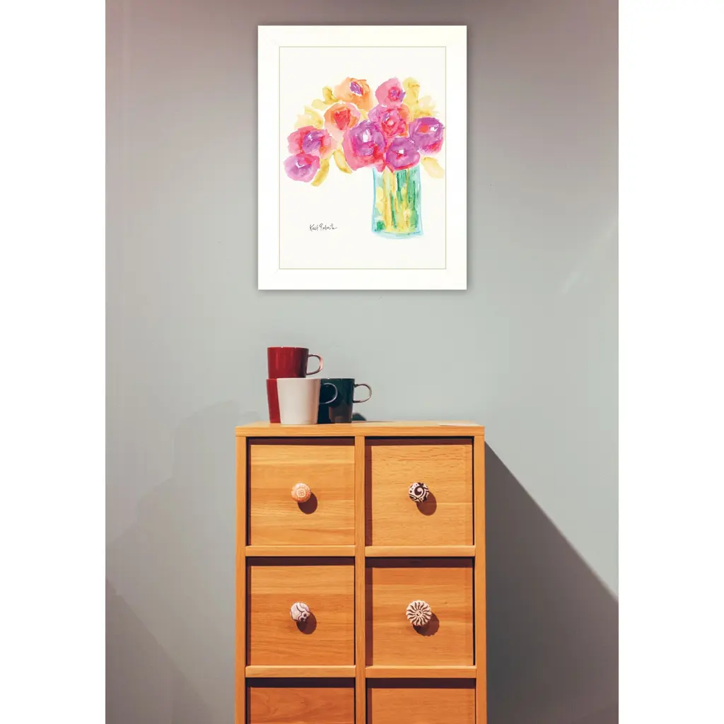 This speak in flowers white framed print wall art will add a beautiful decorative accent to your decor. This print is a visual artistic expression that allows you to decorate your space in style. Reproduced for you on paper, this hanging decorative accent will be a trendy and fashionable way to dress your walls. Hang on your wall to add some up to date fashion and decoration. Utilize this opportunity to create a focal point in the room with this fabulous wall decor option. 19" H x 15" W x 1" D