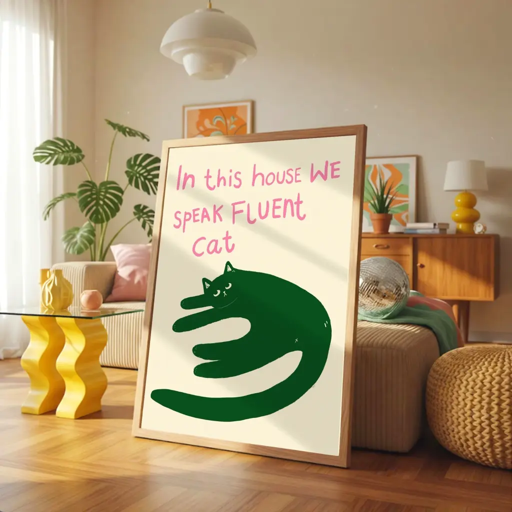 Speaking Cat - Art Print - LargeIllustrated by Maria. This print is perfect for all cat lovers alike! Printed in the U.K.Printed on premium matte, fine art, archival paperPaper weight: 230 gsmSold without a frame.