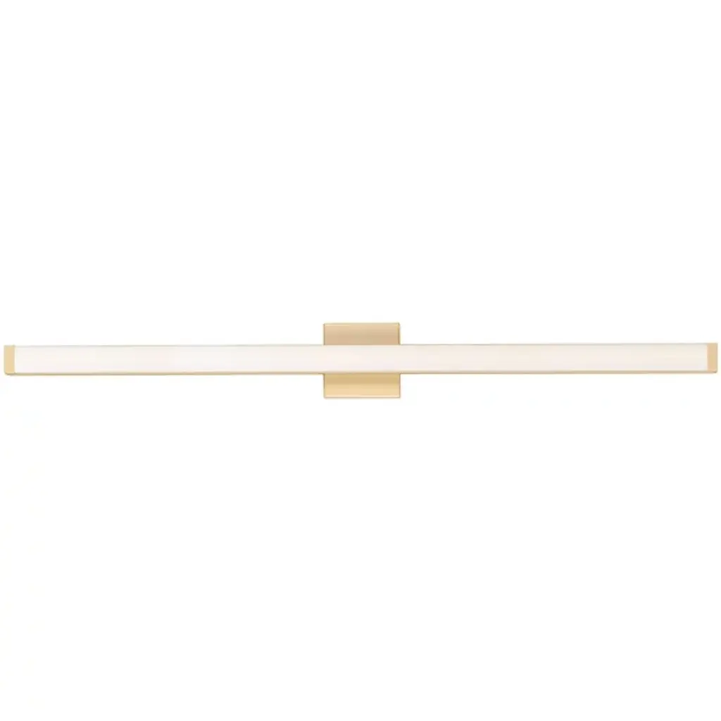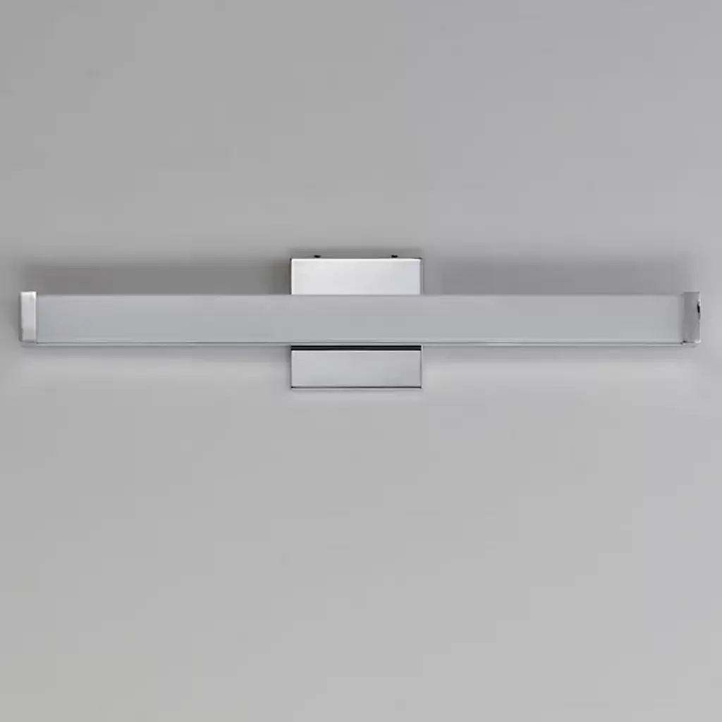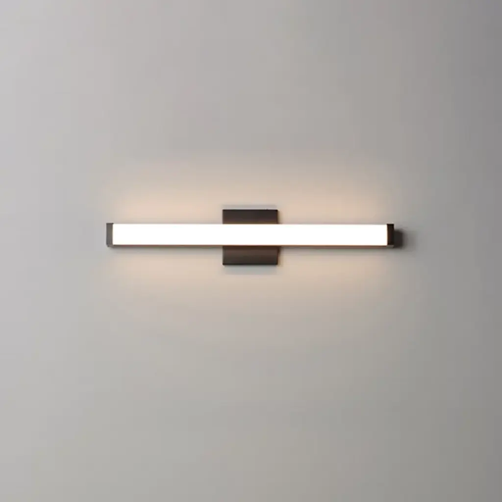 The Spec LED Vanity Light from Maxim Lighting reflects modernist bathroom design principles, emphasizing clean horizontal lines and functional illumination. The design approach is based on creating uniform light distribution through an elongated profile, which is suitable for mirror placement. A square backplate anchors the trim metal housing, detailed with brackets at each end. The aluminum construction features an acrylic diffuser that produces radiant, uniform illumination from integrated LEDs. Installation flexibility allows both horizontal and vertical mounting configurations for various bathroom layouts.