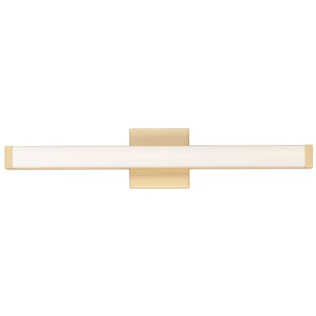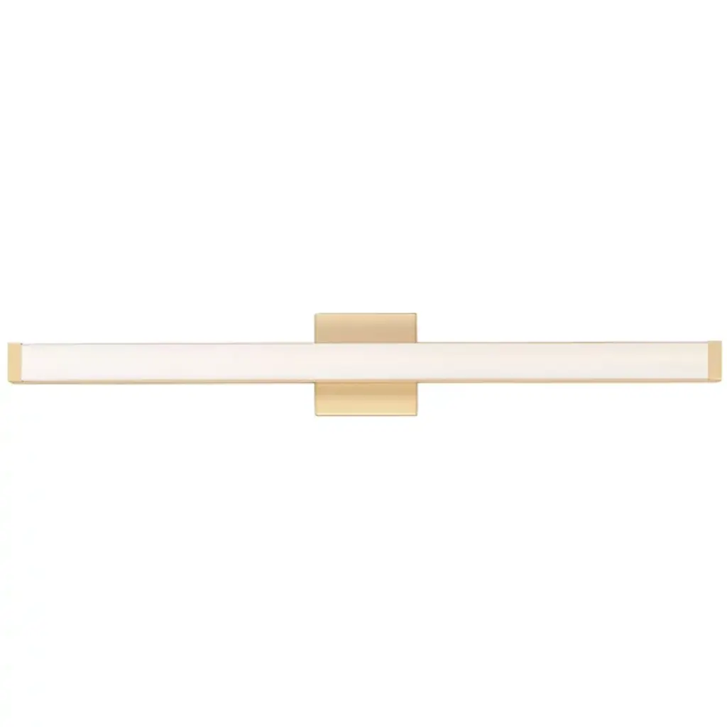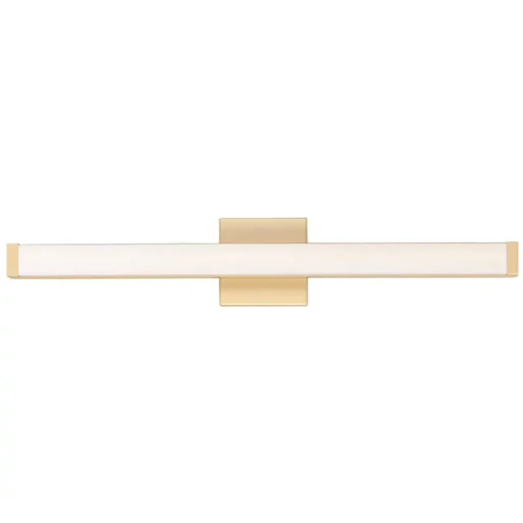 The Spec LED Vanity Light from Maxim Lighting reflects modernist bathroom design principles, emphasizing clean horizontal lines and functional illumination. The design approach is based on creating uniform light distribution through an elongated profile, which is suitable for mirror placement. A square backplate anchors the trim metal housing, detailed with brackets at each end. The aluminum construction features an acrylic diffuser that produces radiant, uniform illumination from integrated LEDs. Installation flexibility allows both horizontal and vertical mounting configurations for various bathroom layouts.