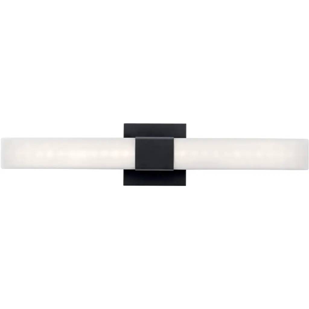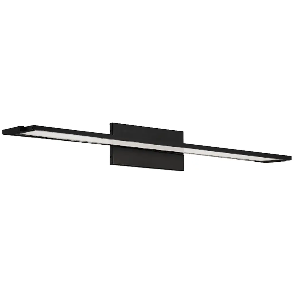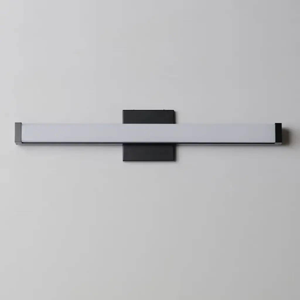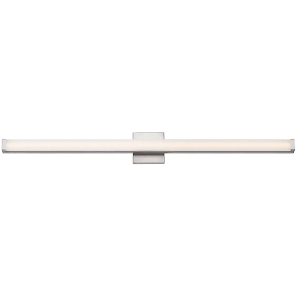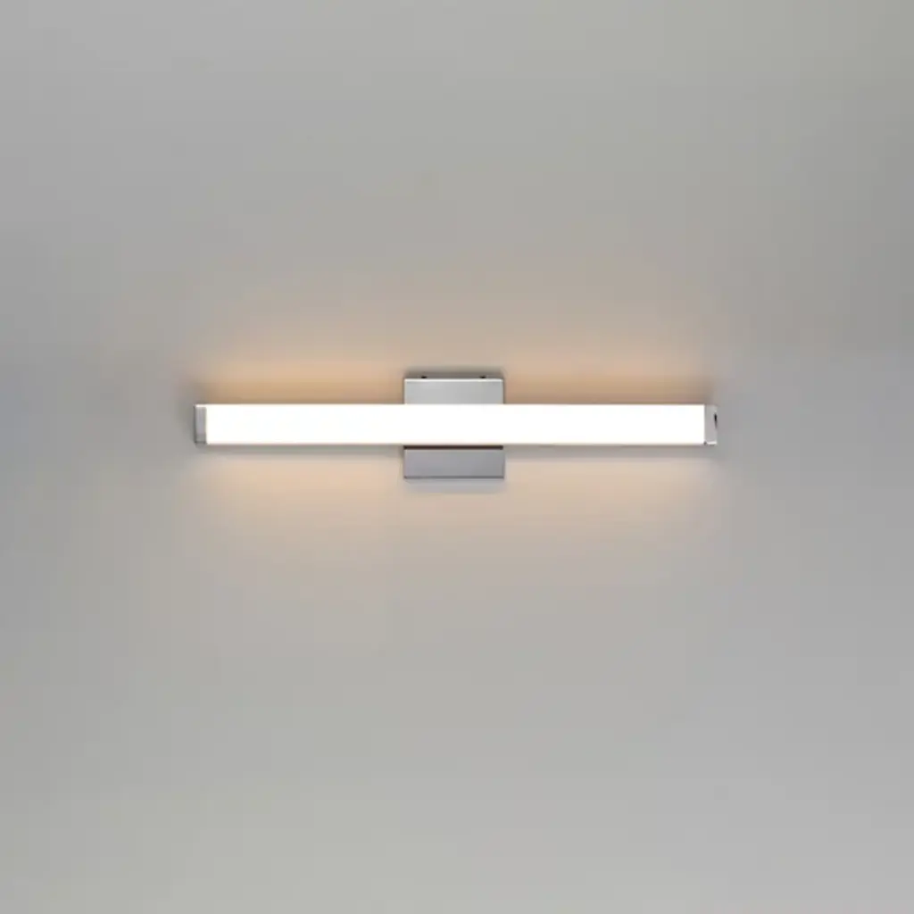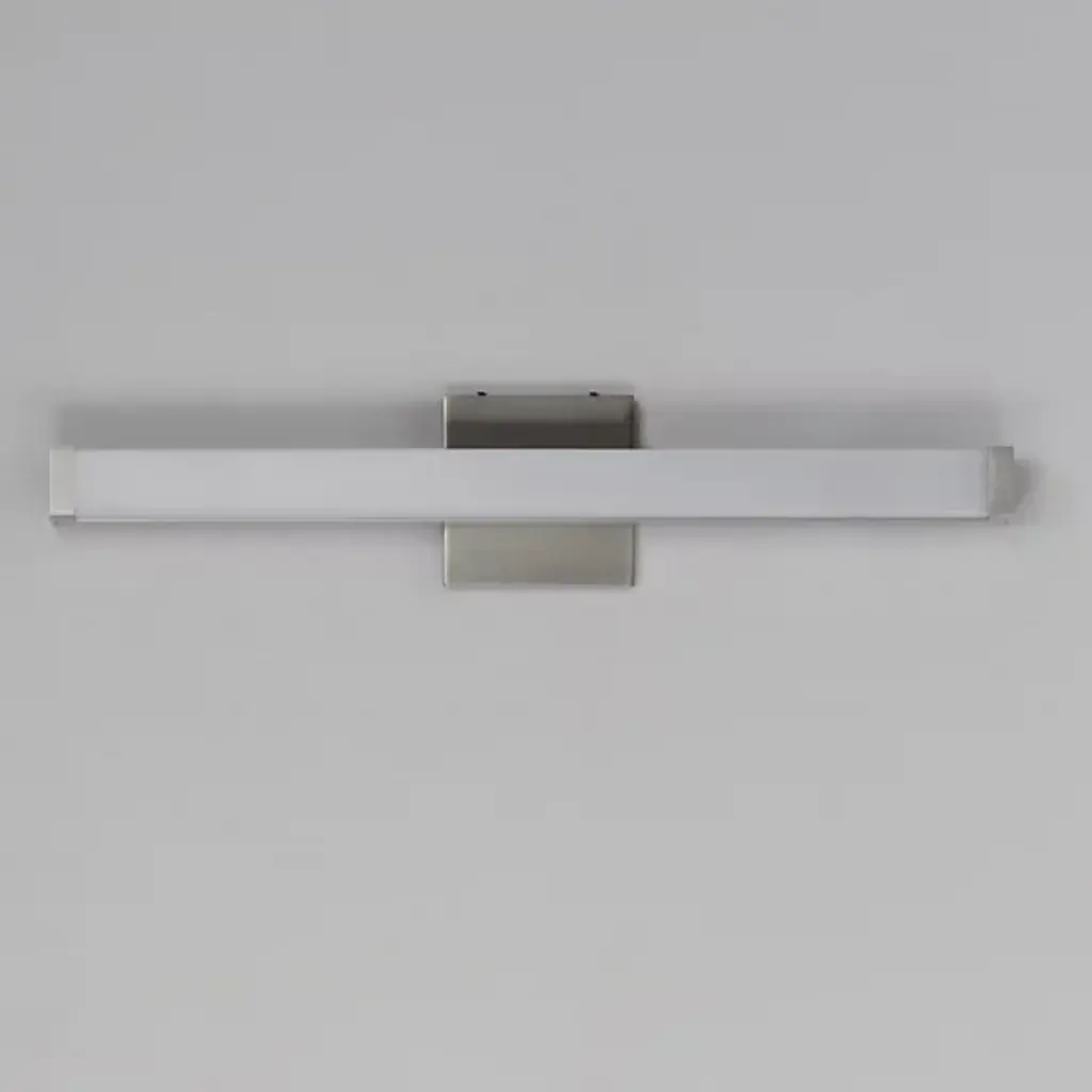 The Spec LED Vanity Light from Maxim Lighting reflects modernist bathroom design principles, emphasizing clean horizontal lines and functional illumination. The design approach is based on creating uniform light distribution through an elongated profile, which is suitable for mirror placement. A square backplate anchors the trim metal housing, detailed with brackets at each end. The aluminum construction features an acrylic diffuser that produces radiant, uniform illumination from integrated LEDs. Installation flexibility allows both horizontal and vertical mounting configurations for various bathroom layouts.