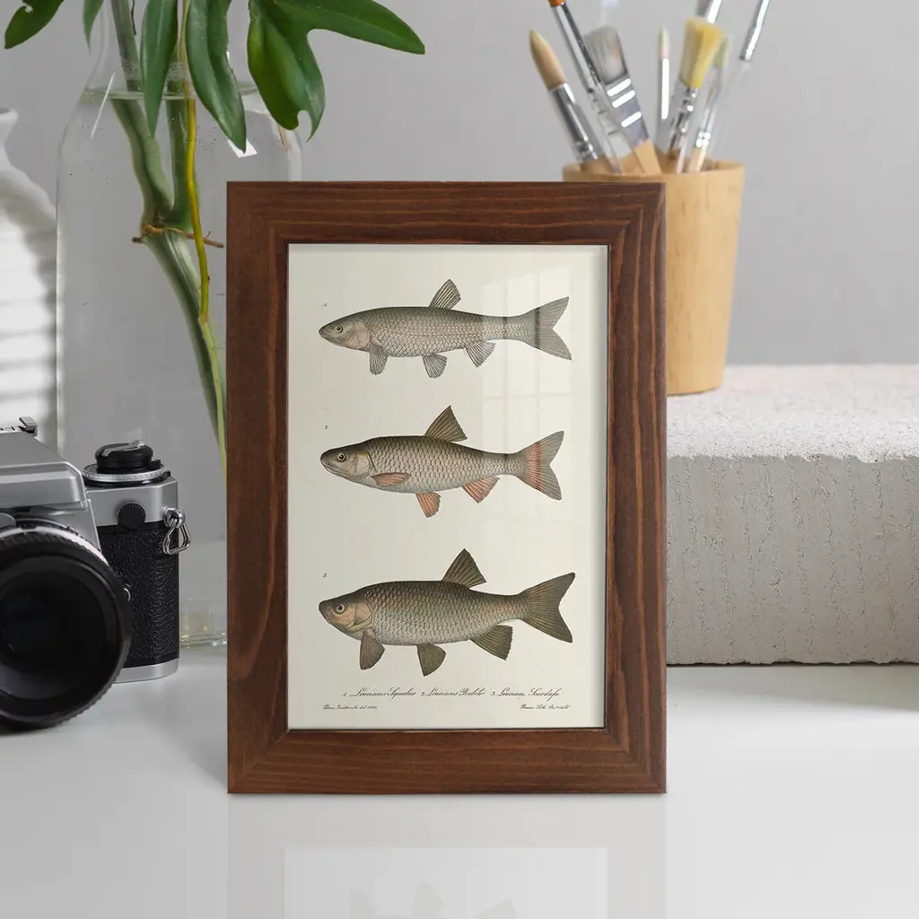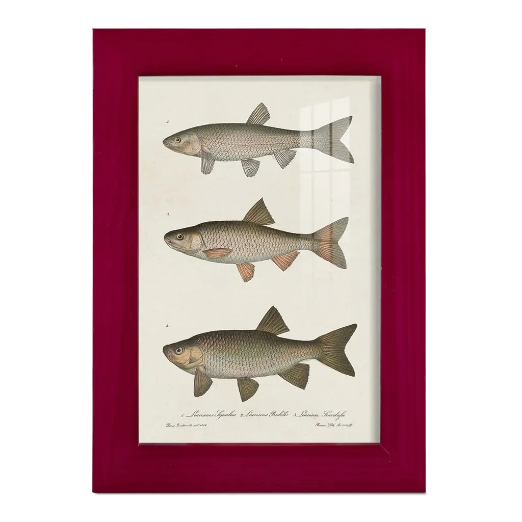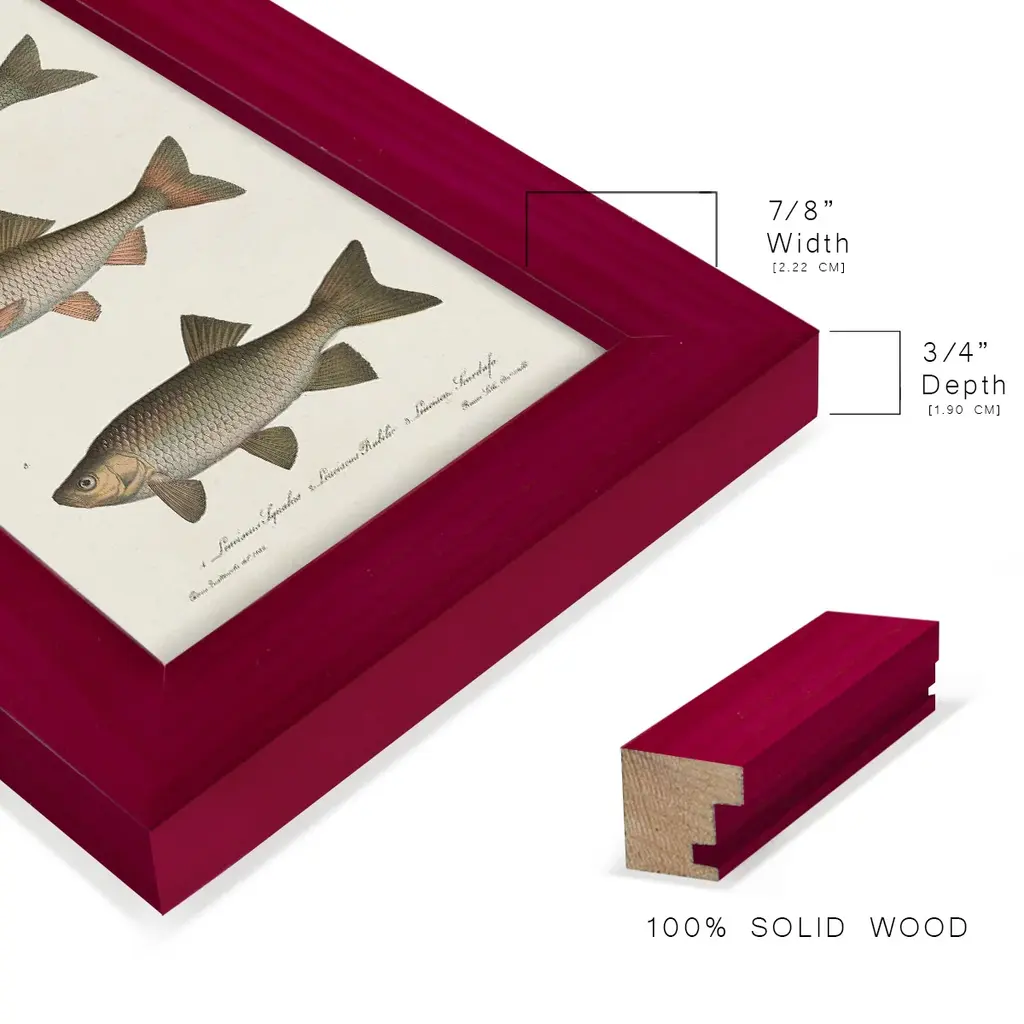 Species of Antique Fish IV -EZ SWITCH Framed Print w/glass-Cherry Red A delightful, framed print. Featuring a solid wood frame with real wood glass. This premium print is giclee quality. In addition, every frame features a removable back and table top stand. This allows you to change your art in the future or to just stand the art on a table for a new look. We are sure you'll enjoy our new series of EZ SWITCH Framed Art. Solid Wood Frame Real Glass Removable / Replaceable Art Built in Tabletop Stand Sizes range from 4x6 up to 12x15 - buy just one or pair them up as sets as you see fit.