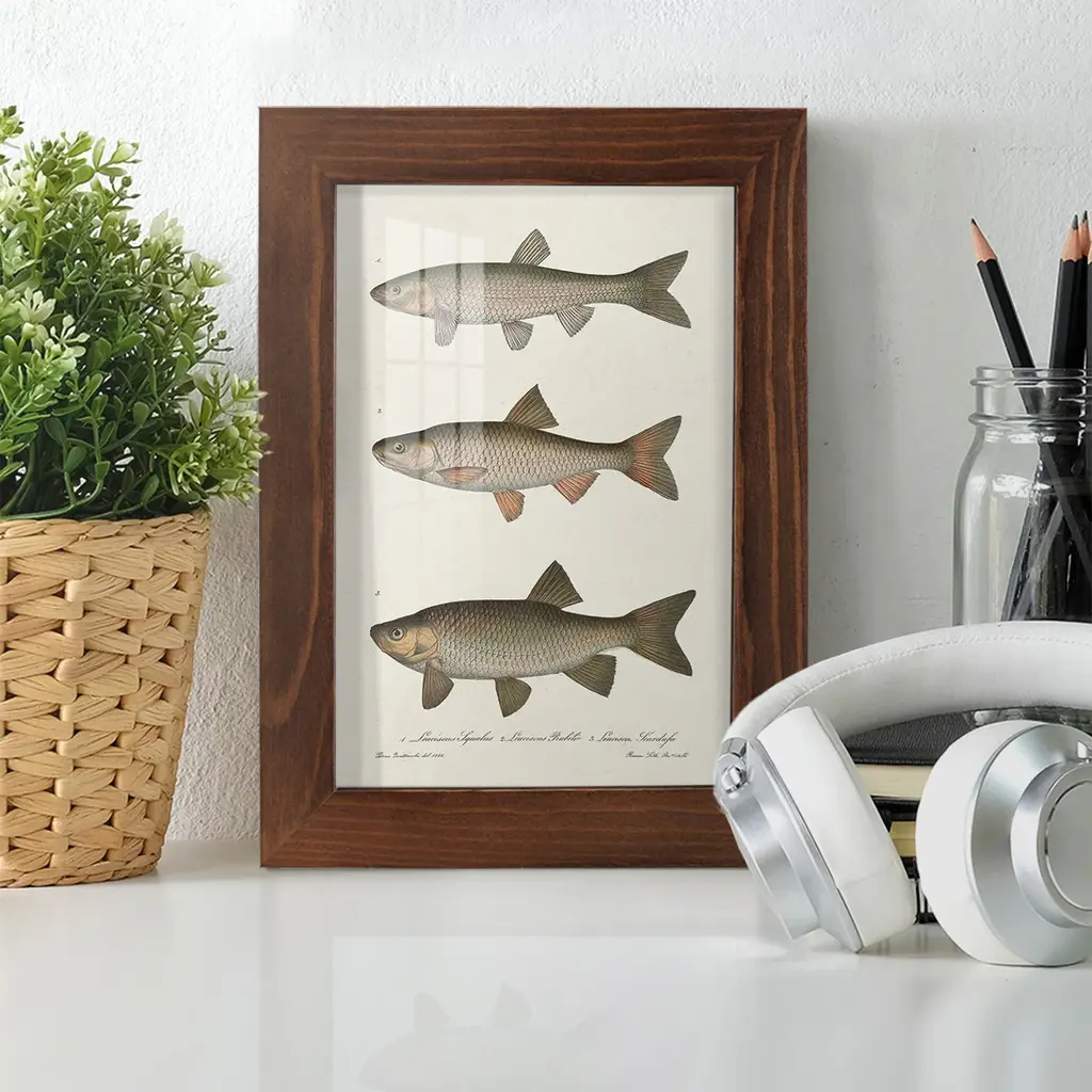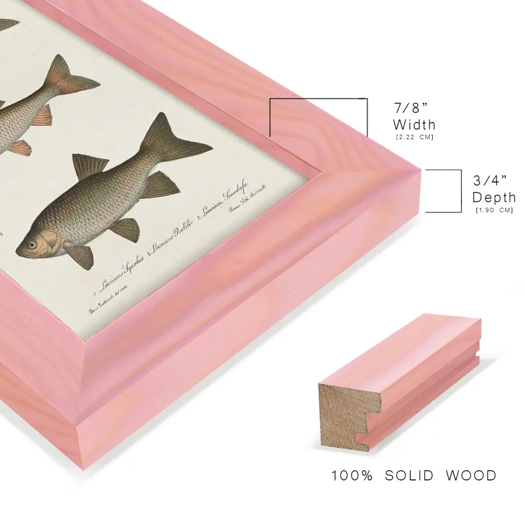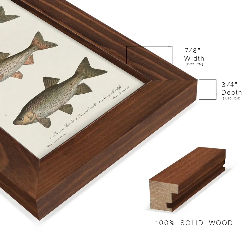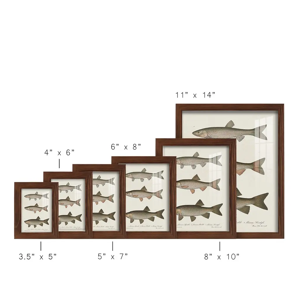 Species of Antique Fish IV -EZ SWITCH Framed Print w/glass-Cherry Red A delightful, framed print. Featuring a solid wood frame with real wood glass. This premium print is giclee quality. In addition, every frame features a removable back and table top stand. This allows you to change your art in the future or to just stand the art on a table for a new look. We are sure you'll enjoy our new series of EZ SWITCH Framed Art. Solid Wood Frame Real Glass Removable / Replaceable Art Built in Tabletop Stand Sizes range from 4x6 up to 12x15 - buy just one or pair them up as sets as you see fit.
