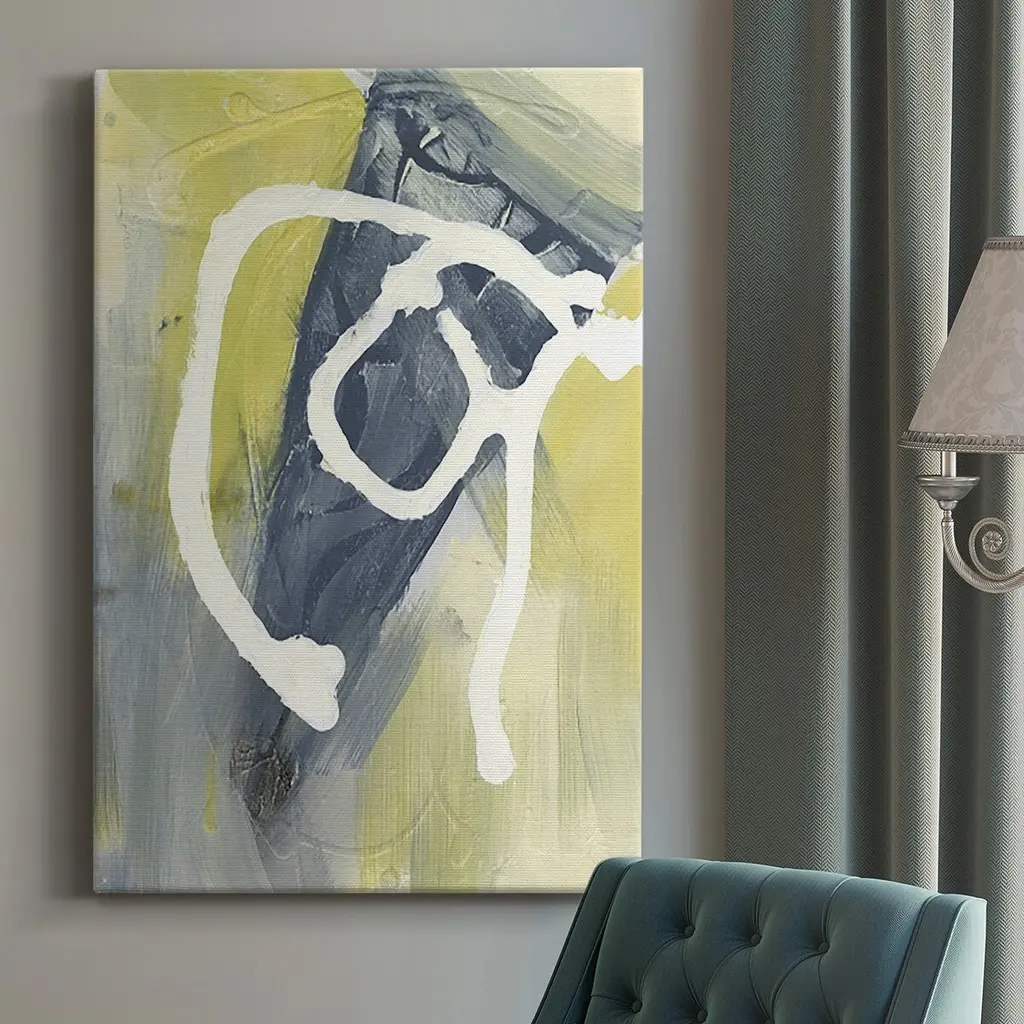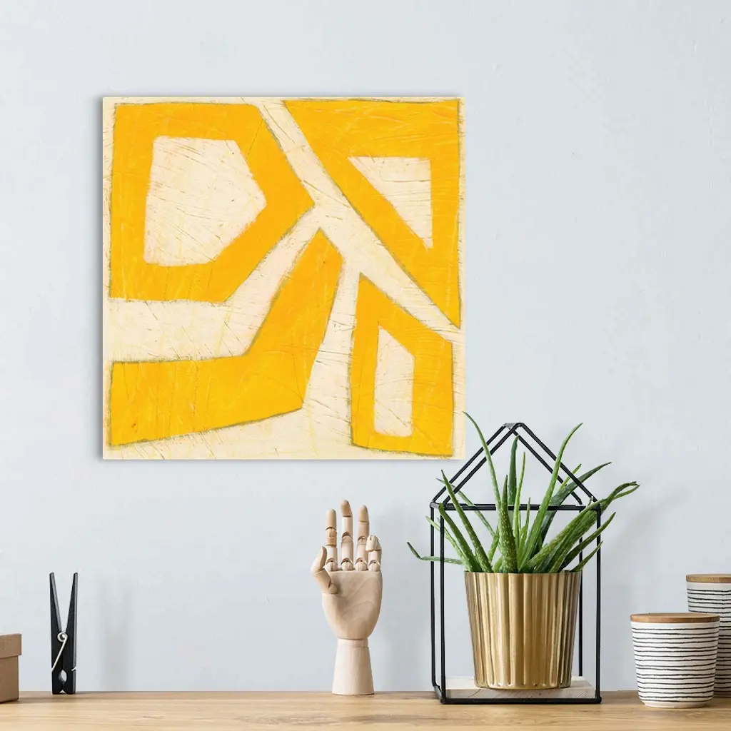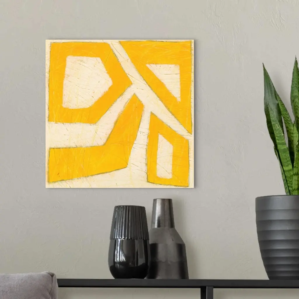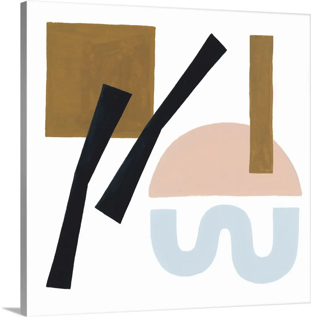 Mid-century inspired painting of abstract shapes in vibrant colors.