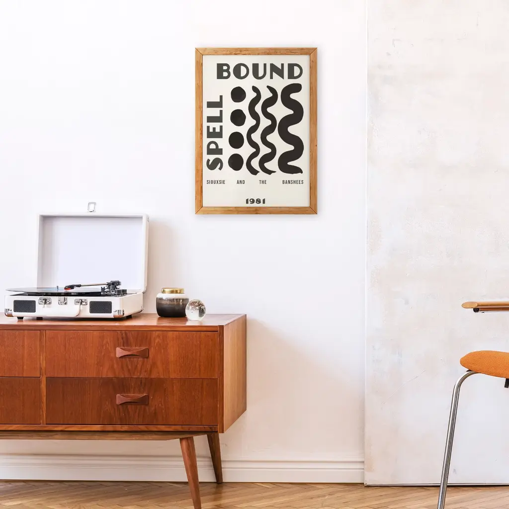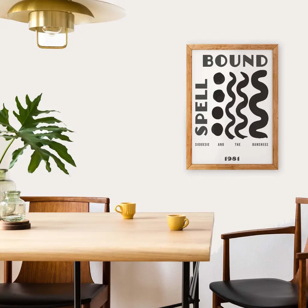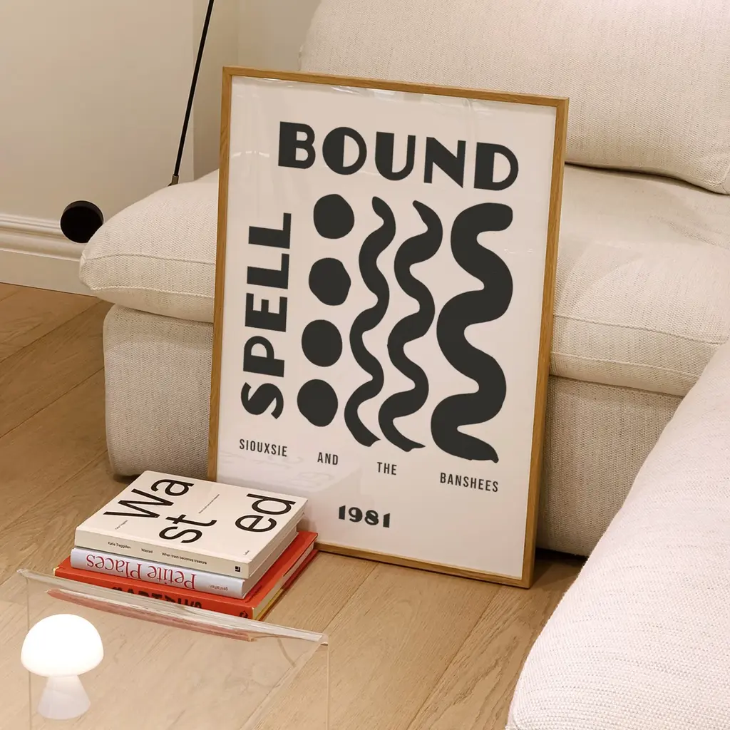 Add some abstract magic to your wall with our Spellbound art print. Inspired by the great 80s hit by the iconic Siouxsie And The Banshees. Using abstract lines and bold graphics this art print is sure to add a simplistic statement to your walls whilst adding a lot of nostalgic soul. Pair with a spider plant for a sophisticated supernatural style or place ontop of your 70s sideboard for midcentury modern tones.All in the details * Sold without frame* Available in Sizes A2 (594 x 420) & A3 (297 x 420) mm * Printed on Munken pure smooth cream paper which is certified by the Rainforest Alliance Program for FSC® Standards