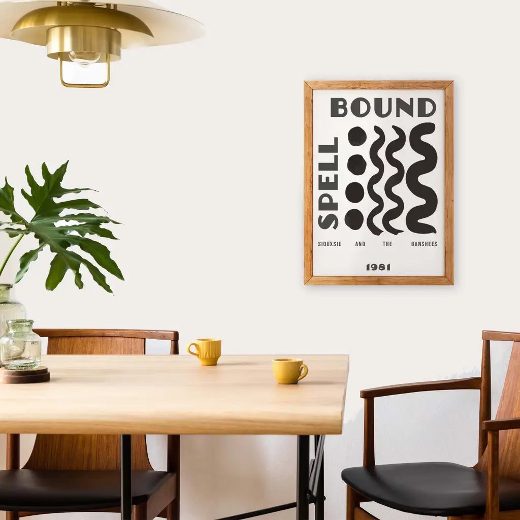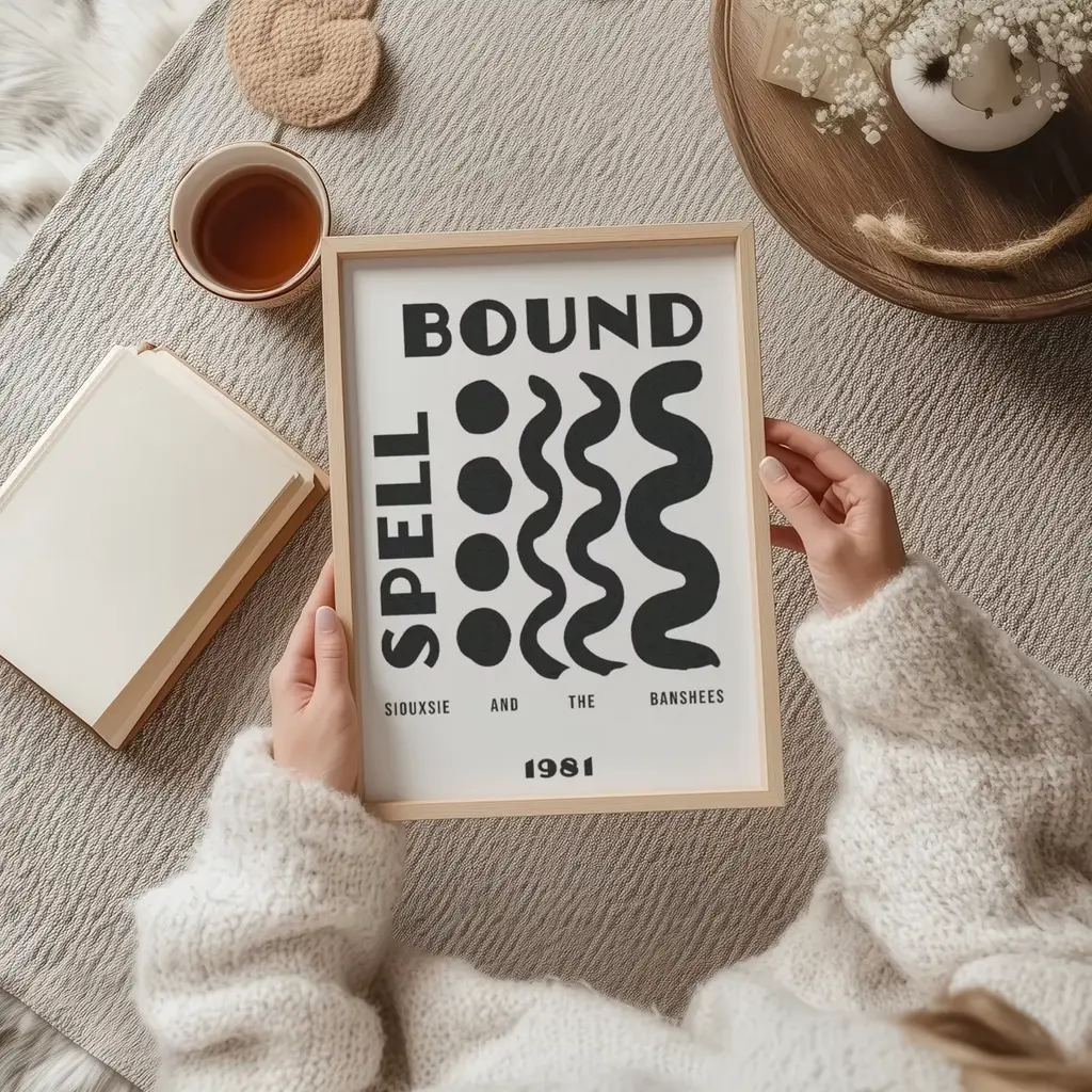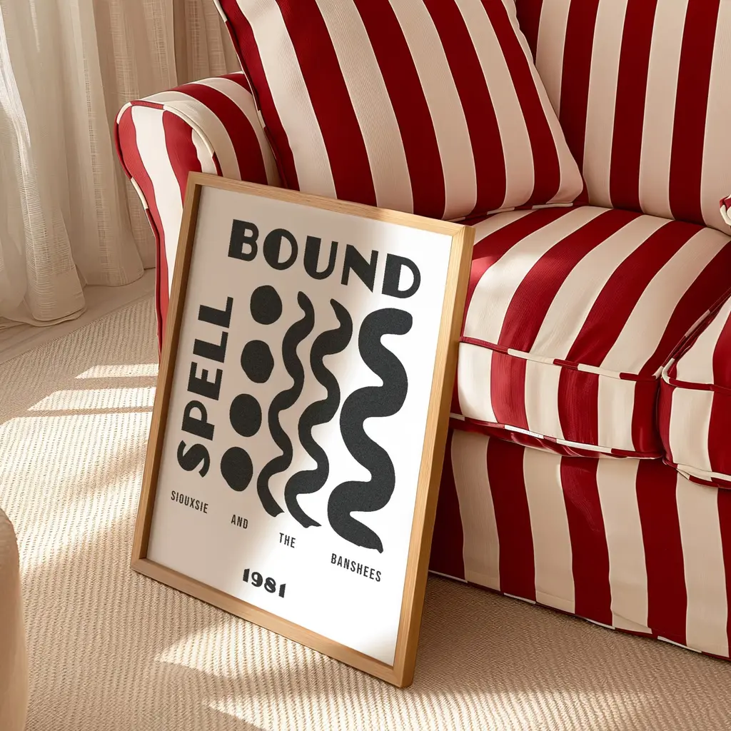 Add some abstract magic to your wall with our Spellbound art print. Inspired by the great 80s hit by the iconic Siouxsie And The Banshees. Using abstract lines and bold graphics this art print is sure to add a simplistic statement to your walls whilst adding a lot of nostalgic soul. Pair with a spider plant for a sophisticated supernatural style or place ontop of your 70s sideboard for midcentury modern tones.All in the details * Sold without frame* Available in Sizes A2 (594 x 420) & A3 (297 x 420) mm * Printed on Munken pure smooth cream paper which is certified by the Rainforest Alliance Program for FSC® Standards * Please note colour my slightly vary in real life vs screen