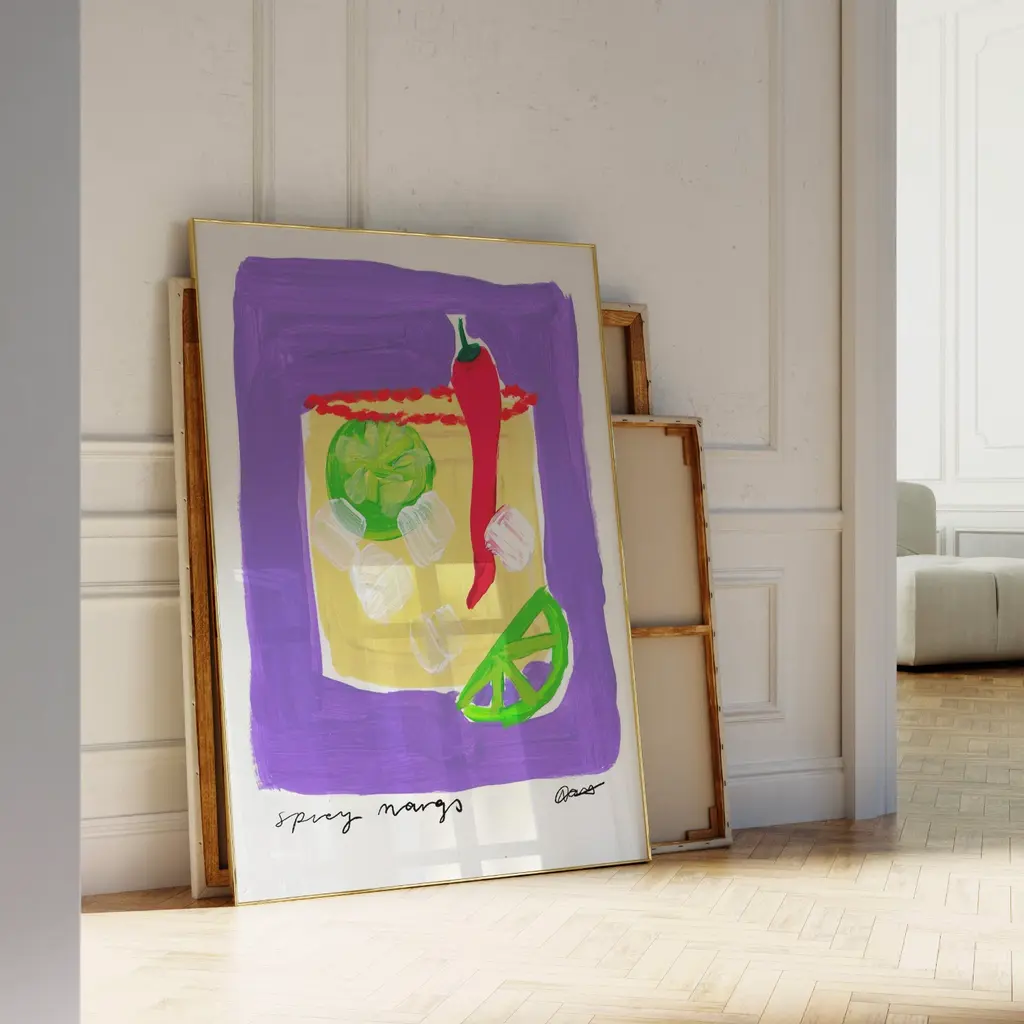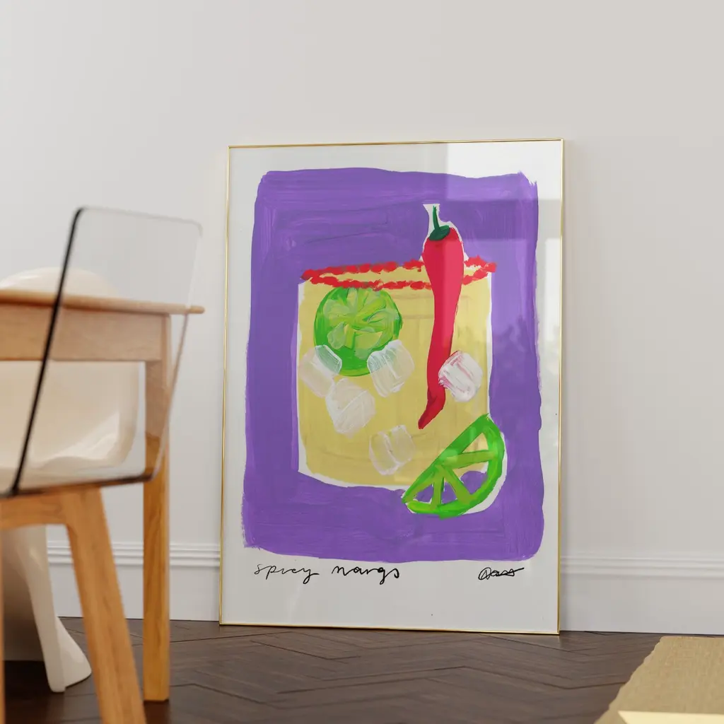 Spicy Margs Hand Painted Art Print - A3Hand painted by Natalie and made into a beautiful print, this print is a perfect addition to any home decor. Smooth fine art 230 gsm matte card. Printed with vivid colour and detail. Sold without a frame.