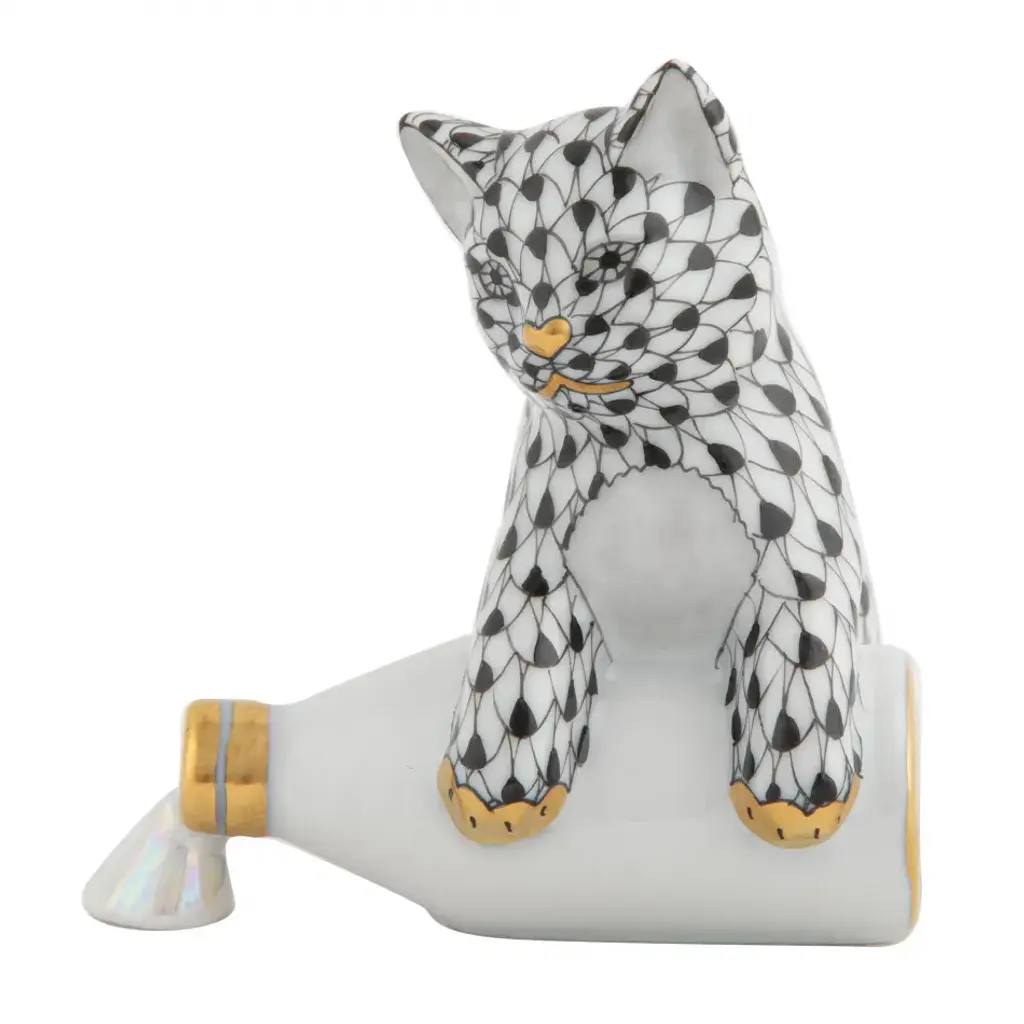 Endearing animals meek and bold, large and small, demure and majestic eagerly await the chance to melt your heart and warm your home. Each is brought to life by the skilled hands of artisans crafting and painting these charming porcelain creatures. The famous fishnet décor adorning many of the animals took form in 1858 when a Herend painter became inspired by a fishscale design he saw on a Chinese porcelain plate and painted a similar pattern onto a rooster figurine to imitate feathers. The rest is history, with the fishnet design now a Herend signature prized worldwide. Now the biggest porcelain manufactory in Europe, Herend was founded in 1826 to produce earthenware in the small Hungarian village for which it was named. At the time, Hungary was flooded with low-cost pottery, but in 1839, Mor Fischer became the Manufactory’s new owner and he decided to focus on producing dinnerware replacement pieces for Europe’s royal families to complement their valuable porcelain patterns from Germany and the Far East. As his client base grew, Fischer commissioned his artists to begin designing dinnerware patterns of their own. Queen Victoria’s 1851 purchase of a large set for Windsor Castle was a milestone, setting the stage for aristocrats throughout Europe to clamor for Herend in their estates. In the 1850s, Herend added meticulously-crafted figurines to its creations. Herend’s trademark fishnet pattern, which is widely recognized and prized as Herend’s signature design, started in 1858 when an artist who was intrigued with a Chinese plate’s fish scale design painted it onto a rooster figurine to imitate feathers.