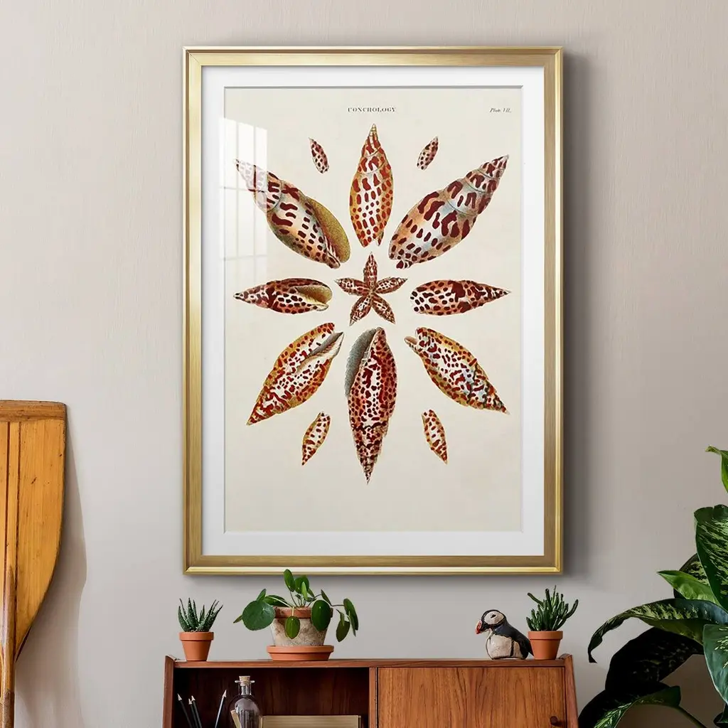Spiral Shell Formation I Premium Framed Print - Ready to Hang A Premium Framed Print created to last. Framed in distressed wood and available in an array of sizes and colors Featuring a beveled a solid wood stretcher bar, each piece comes ready to hand 4 SIZES AVAILABLE 30.5''X42.5'' - Overall Size 26.5'X36.5'' - Overall Size 22.5''x30.5'' - Overall Size 18.5''x24.5'' - Overall Size Each piece is made to order. Each piece comes with hanging hardware. Made in the USA Ready to Hang Giclee Paper Print Acrylic Glass Beveled Matt Board