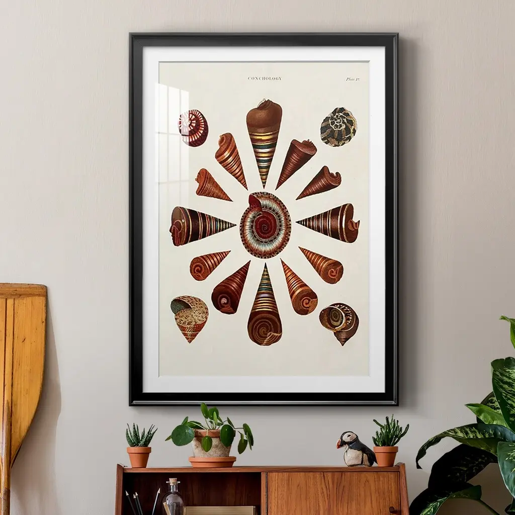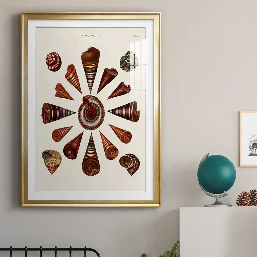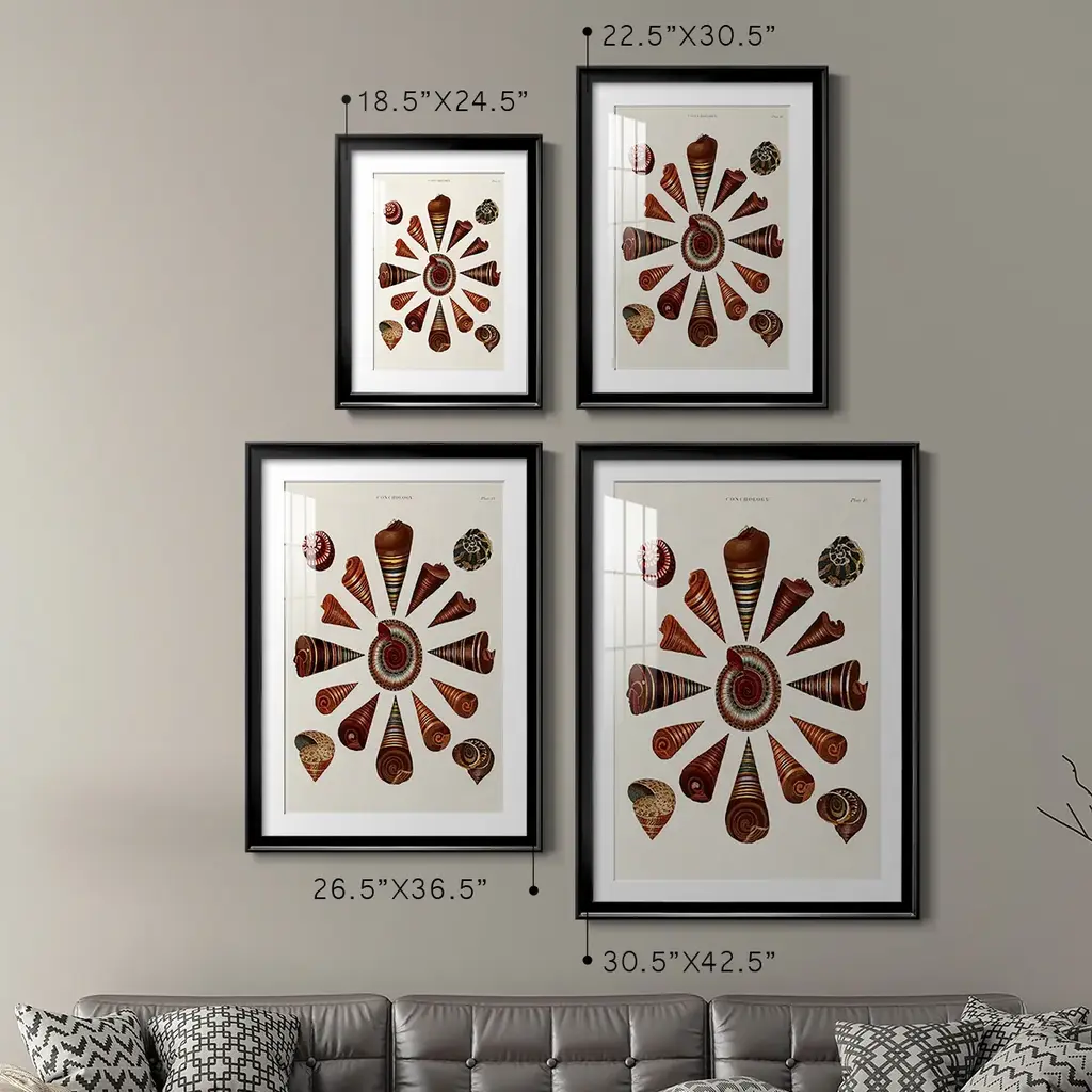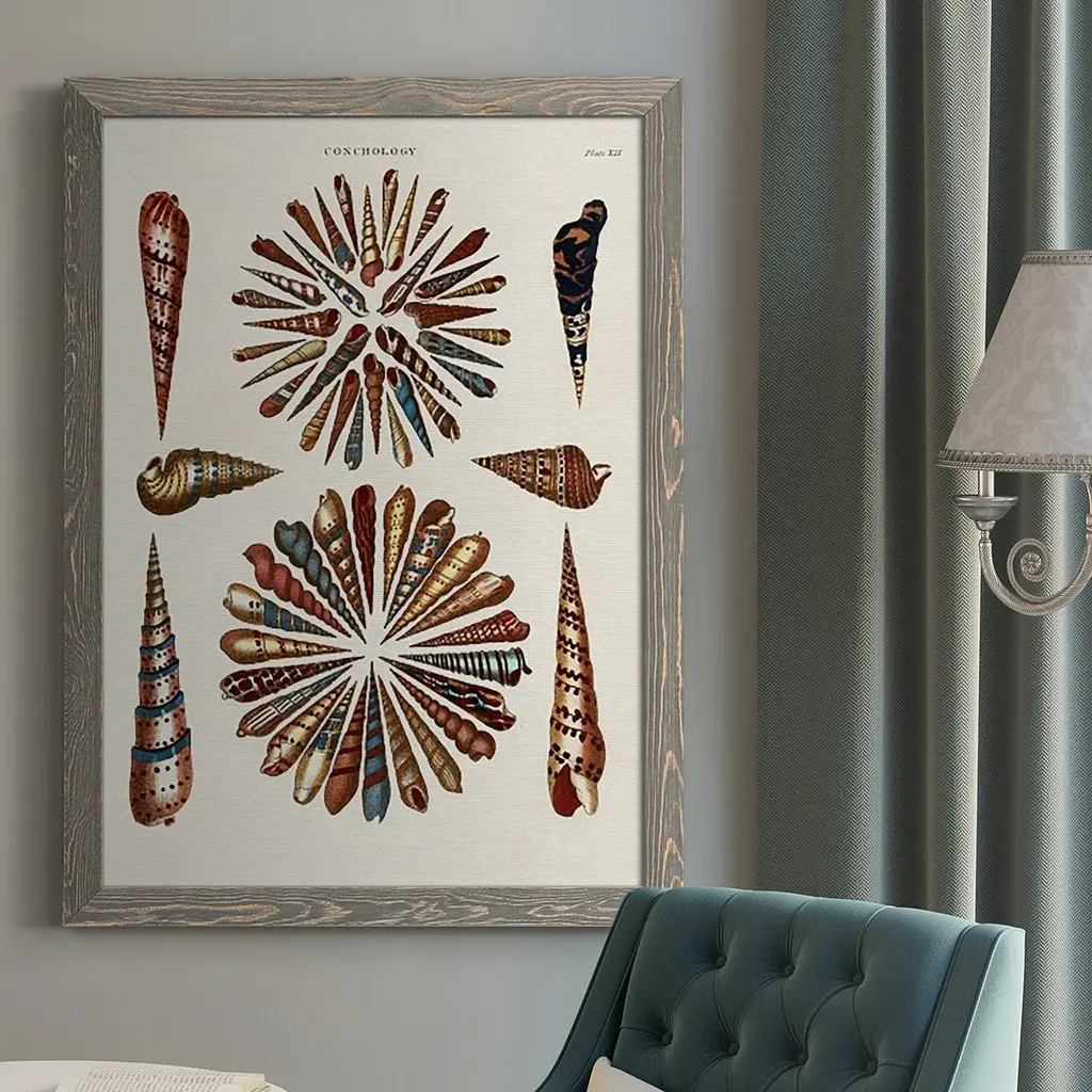 Spiral Shell Formation IV Premium Framed Print - Ready to Hang A Premium Framed Print created to last. Framed in distressed wood and available in an array of sizes and colors Featuring a beveled a solid wood stretcher bar, each piece comes ready to hand 4 SIZES AVAILABLE 30.5''X42.5'' - Overall Size 26.5'X36.5'' - Overall Size 22.5''x30.5'' - Overall Size 18.5''x24.5'' - Overall Size Each piece is made to order. Each piece comes with hanging hardware. Made in the USA Ready to Hang Giclee Paper Print Acrylic Glass Beveled Matt Board