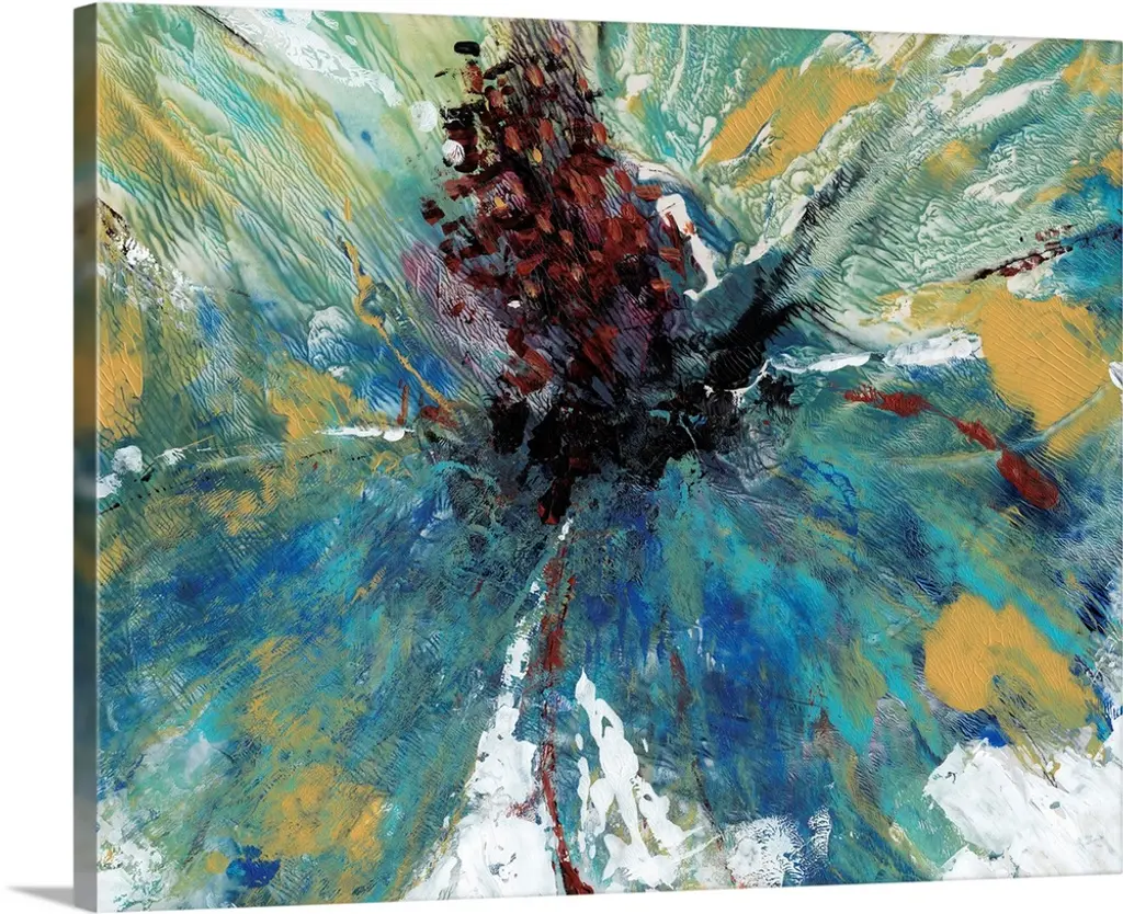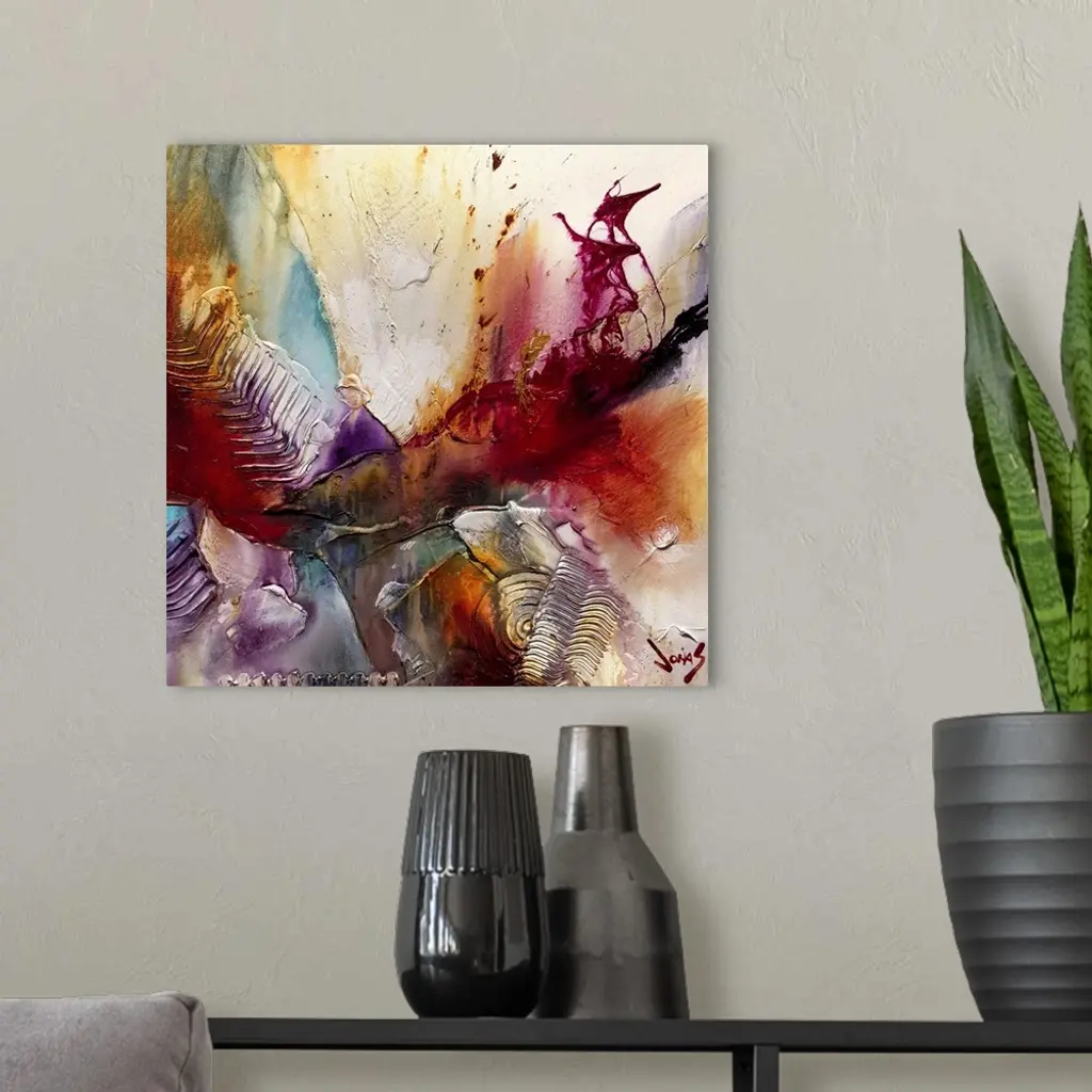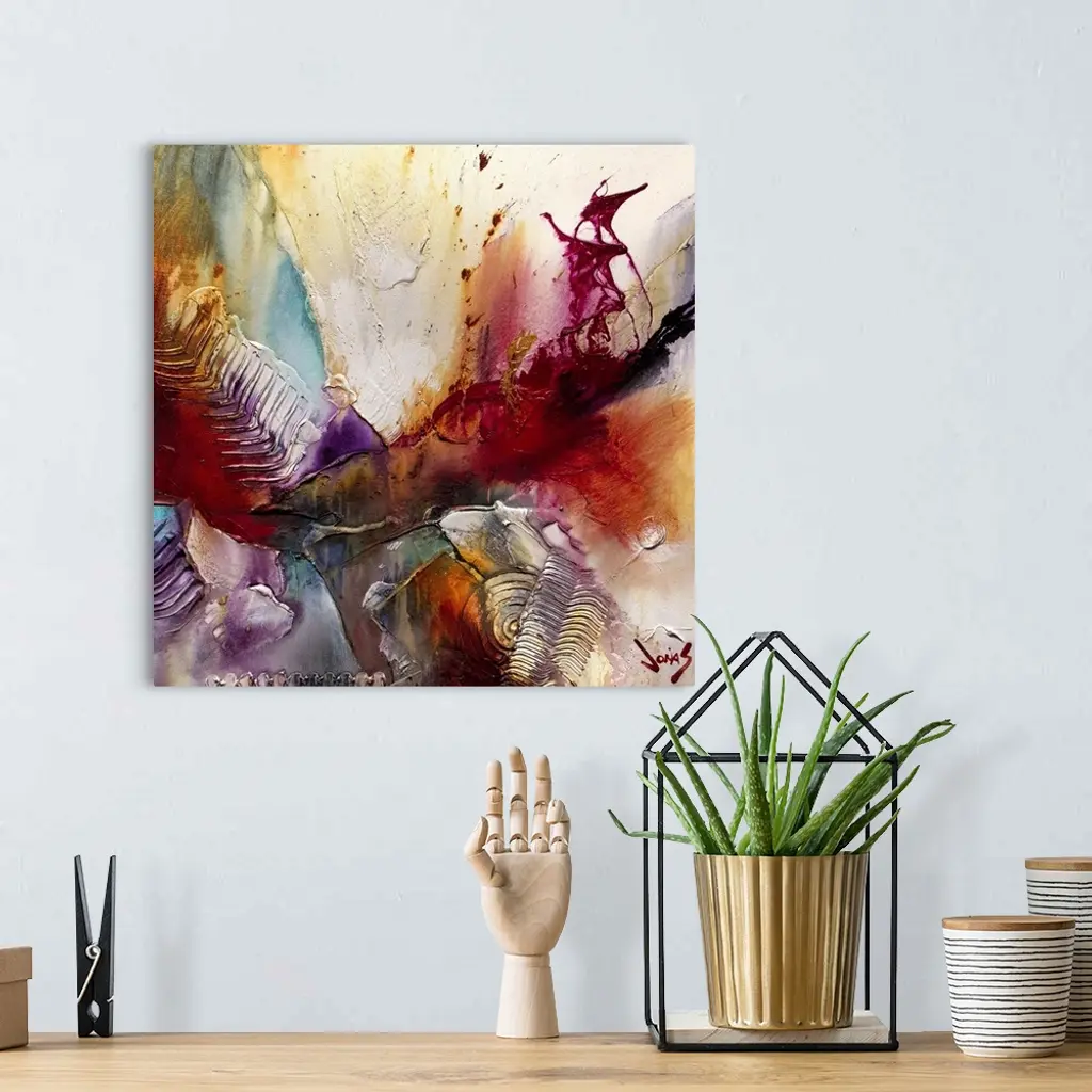 Contemporary abstract painting using wild and vivid colors to create movement and depth.