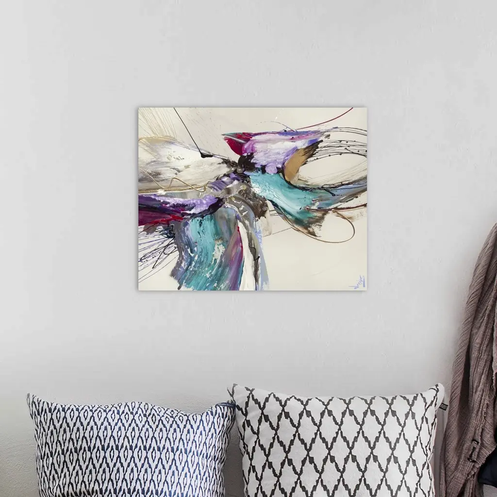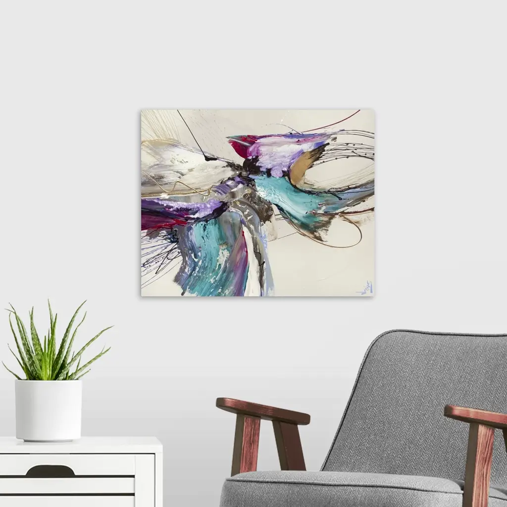 Contemporary abstract painting using wild and vivid colors to create movement and depth.