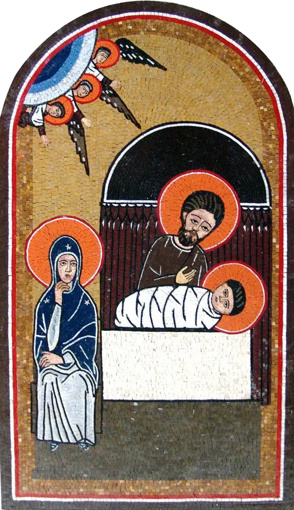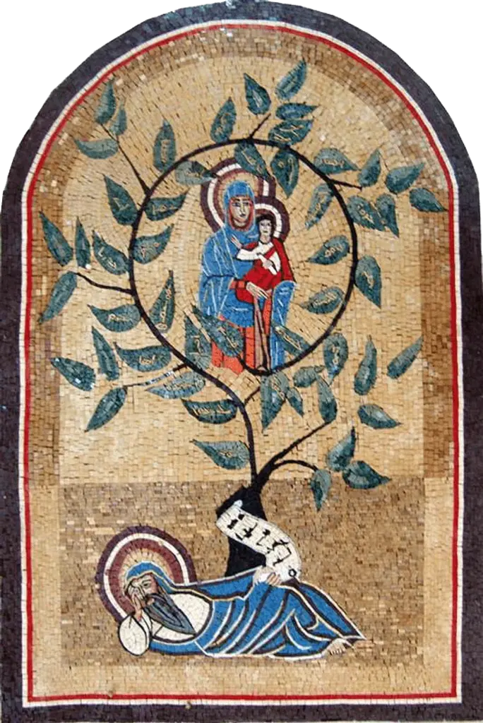 Introducing our exquisite "Spiritual Mosaic of the Tree of Life Arched Mosaic," a truly one-of-a-kind piece that brings a sense of peace and inspiration to your space. This stunning mosaic art beautifully captures the essence of life, spirituality, and heritage, featuring the iconic Tree of Life intertwined with the serene figures of Jesus Christ and the Virgin Mary.Handcrafted with care and precision, each element of this mosaic is meticulously composed of high-quality marble, ensuring both durability and elegance. The intricate design highlights the branches of the Tree of Life, symbolizing growth, strength, and connection, while the delicate portrayal of Jesus and Mary adds a profound spiritual depth to the artwork. This masterpiece serves as a radiant focal point for your wall decorations, offering a unique blend of artistic expression and spiritual significance.Whether you’re looking to enhance your home, office, or sacred space, the "Spiritual Mosaic of the Tree of Life Arched Mosaic" is perfect for those who appreciate art that tells a story and evokes emotion. Its arched shape adds an ornamental touch and complements a variety of interior styles, making it a versatile addition to your decor.This mosaic is not just a decoration; it’s a conversation starter, a source of inspiration, and an embodiment of faith. Ideal for gifting or as a personal treasure, its spiritual message resonates with many, inviting contemplation and reflection into your everyday life. Transform your environment with this captivating piece of art that symbolizes the intertwining of life, love, and spirituality. Elevate your wall decor with the "Spiritual Mosaic of the Tree of Life Arched Mosaic" and let it illuminate your space with beauty and grace.