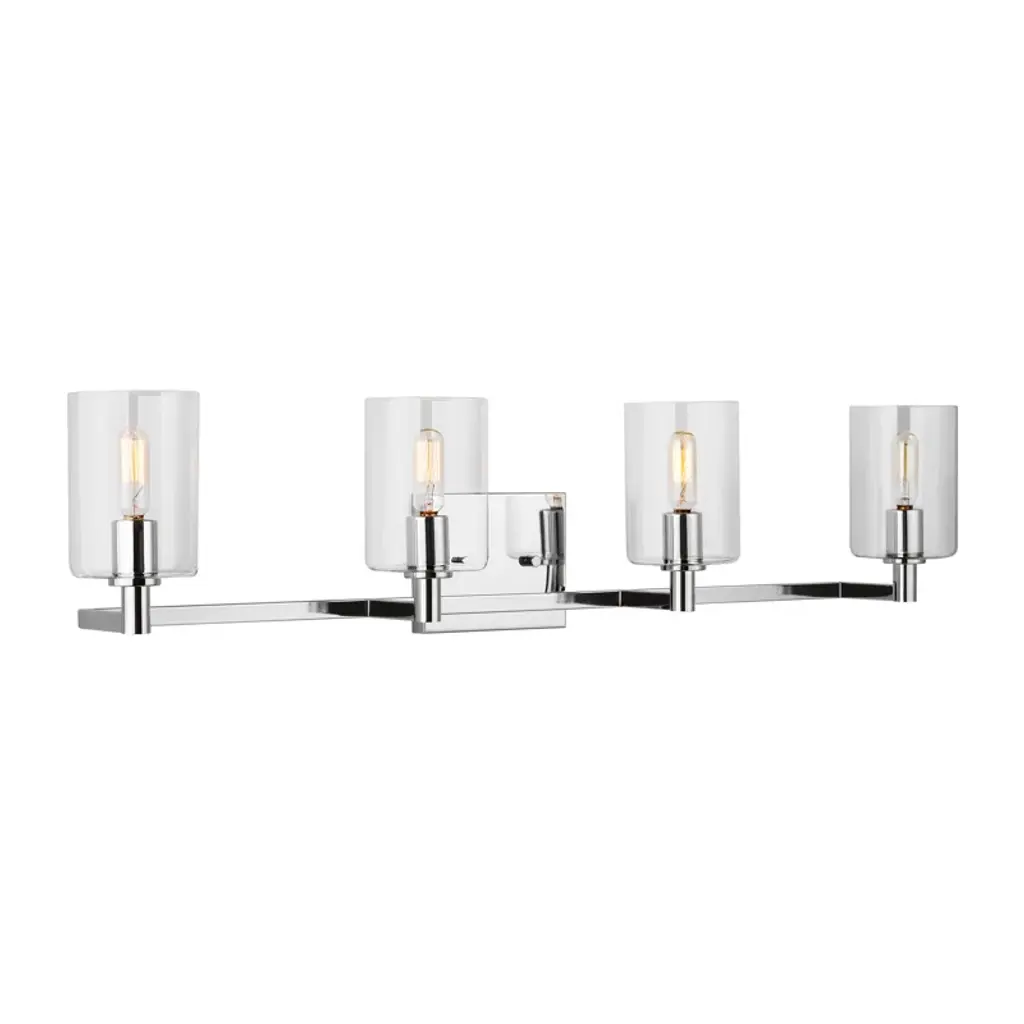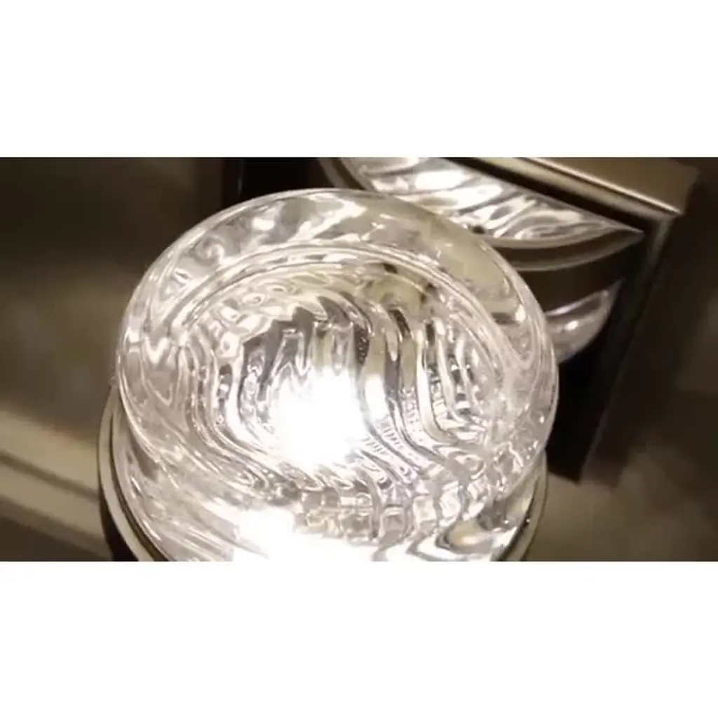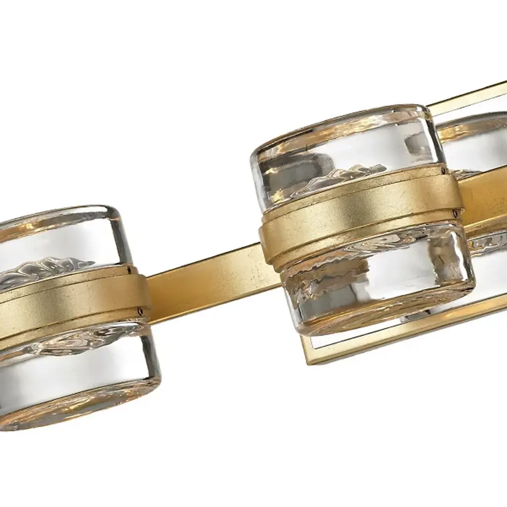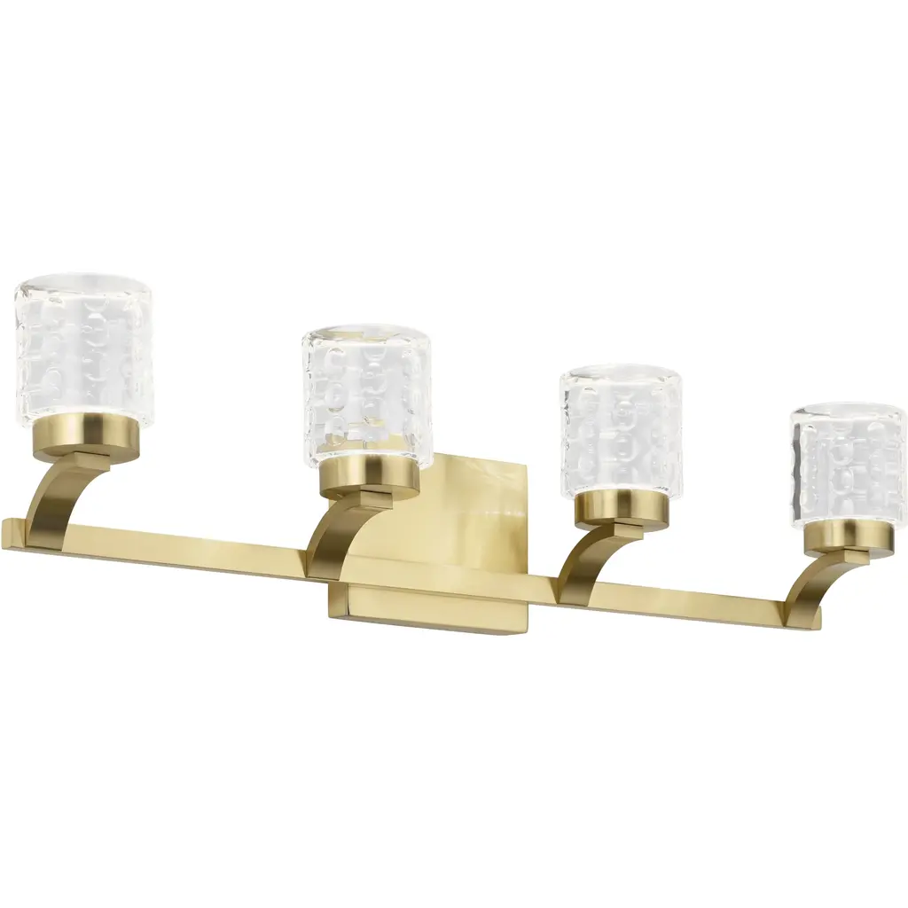 The Splash LED Vanity Light by Troy Lighting captures the beauty of water in its design, featuring Clear Pressed glass shades whose surface and interior mimic its ever-flowing quality. A slim bar made of Hand-Worked Iron wraps around the center of each shade, providing support as well as an alluring decorative contrast. Individual LED lamps help bring this piece to life, shining through the glass for a luxurious glistening effect.