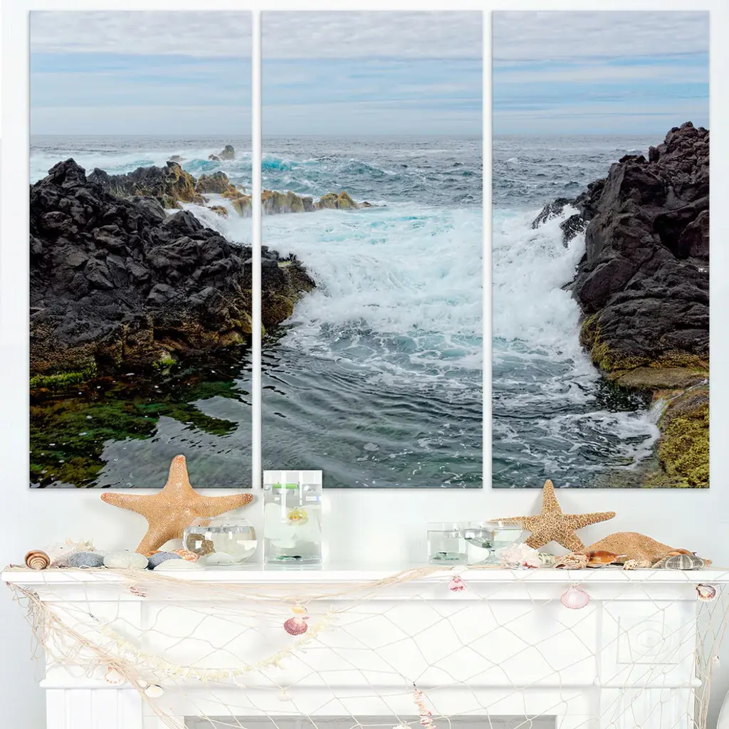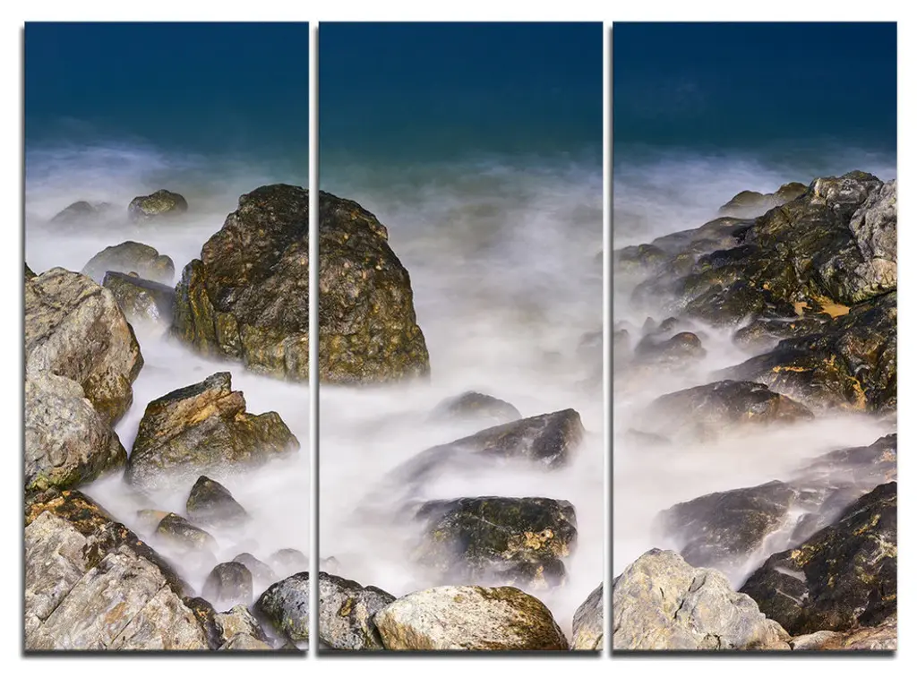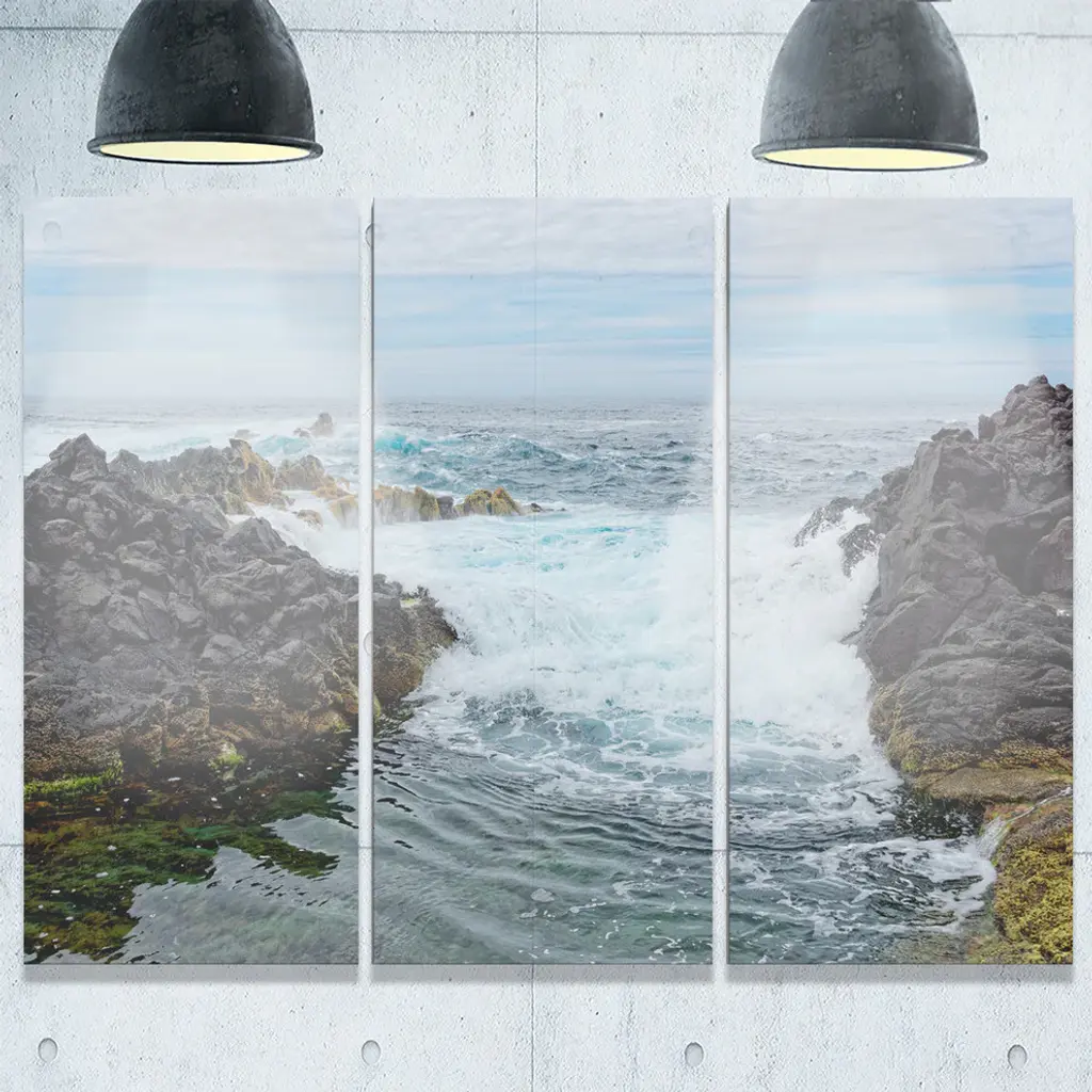 "Splashing Waters To Mossy Rock" Metal Wall Art, 3 Panels, 36"x28"
