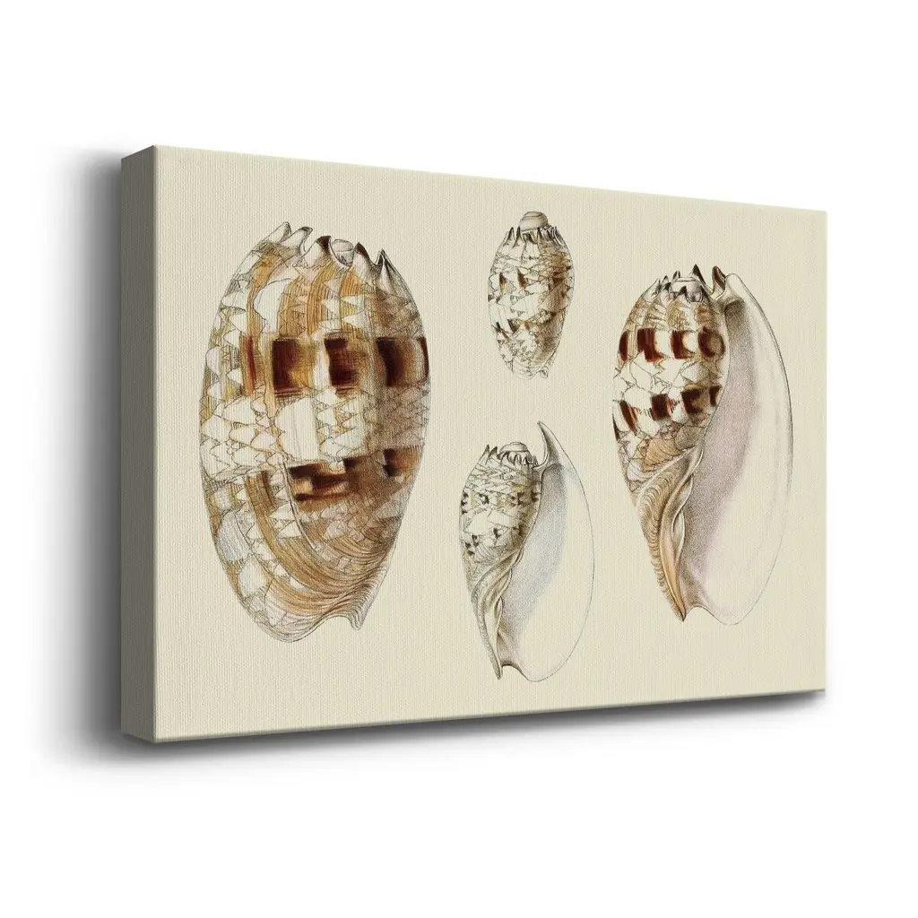 Splendid Shells VIII Premium Gallery Wrapped Canvas - Ready to Hang A premium hand stretched gallery wrapped canvas print created to last. Featuring a beveled a solid wood stretcher bar, each piece comes ready to hand 6 SIZES AVAILABLE 8''X12'' - Overall Size 12''X18'' - Overall Size 18''X27'' - Overall Size 24''x36'' - Overall Size 32''x48'' - Overall Size 40''x60'' - Overall Size Each piece is made to order. Built to Last Each piece comes ready to hang Solid wood stretcher Fade and Water resistant Made domestically