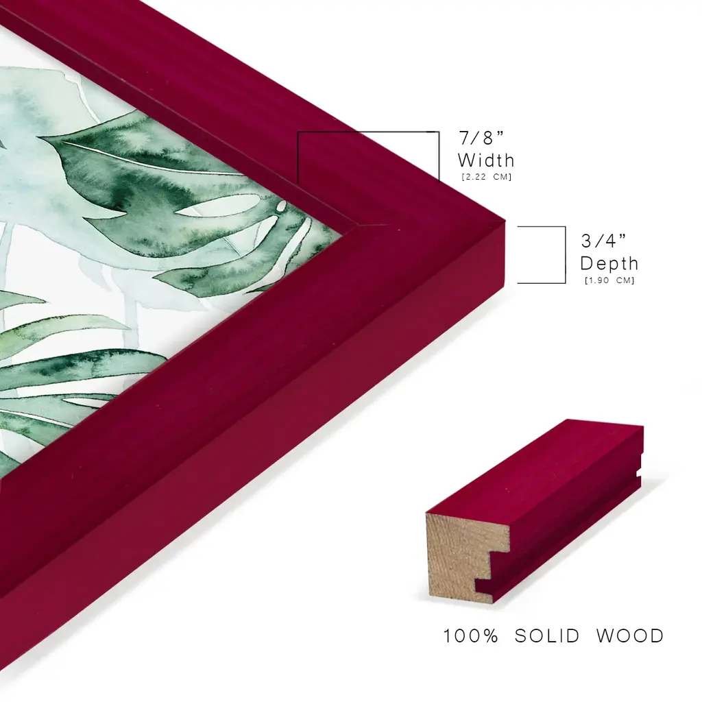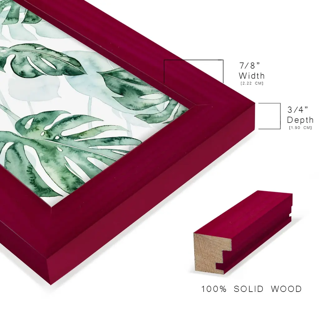 Split Leaf II -EZ SWITCH Framed Print w/glass-Cherry Red A delightful, framed print. Featuring a solid wood frame with real wood glass. This premium print is giclee quality. In addition, every frame features a removable back and table top stand. This allows you to change your art in the future or to just stand the art on a table for a new look. We are sure you'll enjoy our new series of EZ SWITCH Framed Art. Solid Wood Frame Real Glass Removable / Replaceable Art Built in Tabletop Stand Sizes range from 4x6 up to 12x15 - buy just one or pair them up as sets as you see fit.